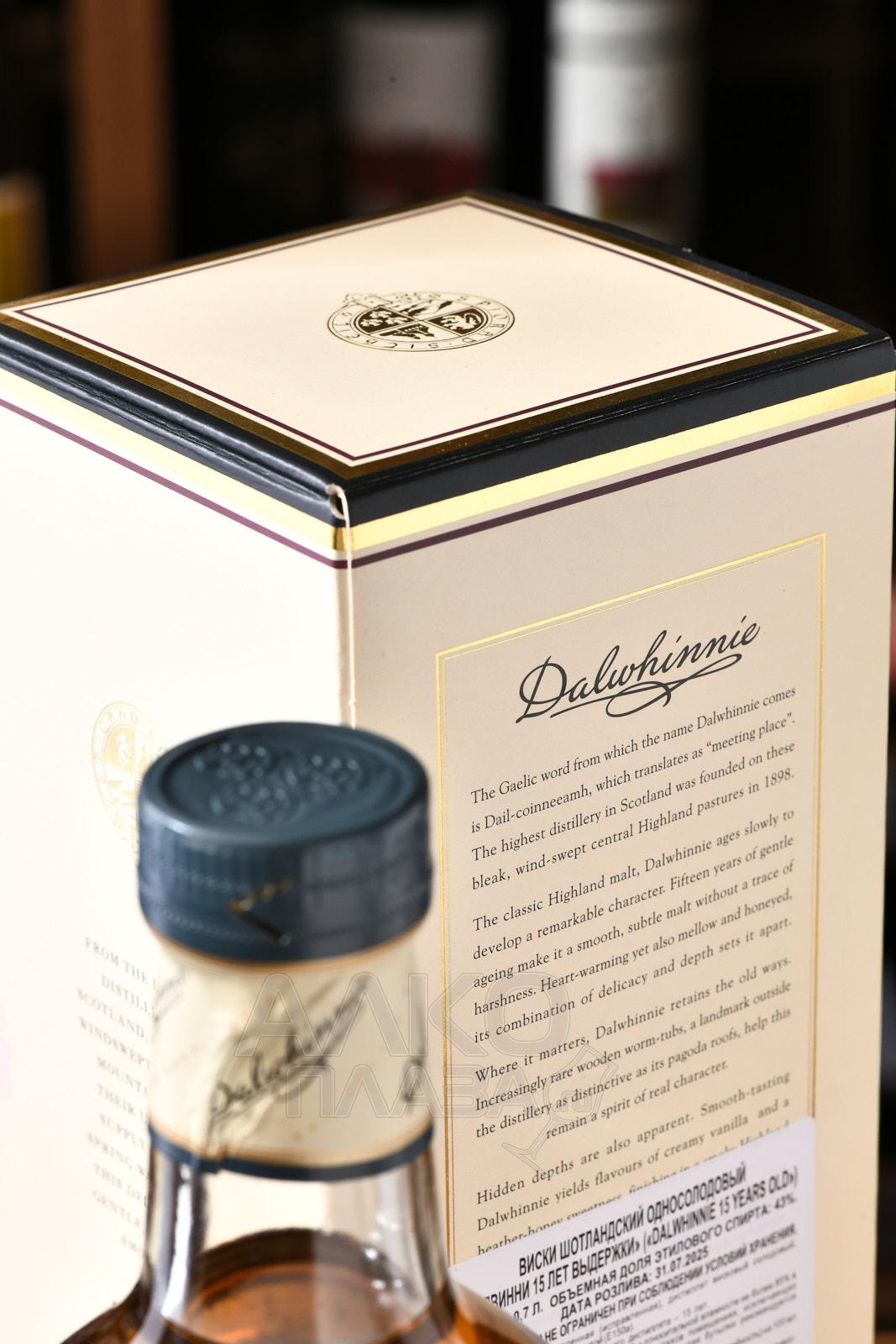 Dalwhinnie 15 years ( Далвини 15 лет ) - виски, оправдывающий ожидание и надпись на этикетке: Gentle spirit ( "мягкий алкогольный напиток"). Очень ароматный, обладает фруктово-медовым букетом и нежной структурой. Виски, умеющий скрывать свои достоинства.
