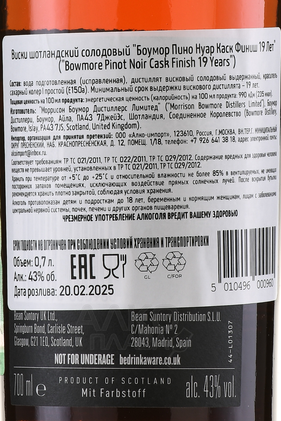 Bowmore 19 Years Pinot Noir Cask Finish - виски Боумор Пино Нуар Каск Финиш 19 лет 0.7 л в п/у