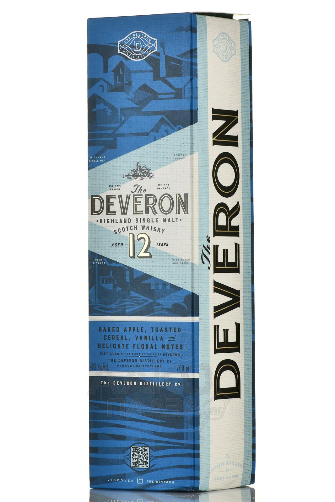 Виски Deveron 12 лет — выдержанный скотч категории «элит», который поставляется в стильной матовой бутылке, укомплектованной тубой. Крепость напитка формата Single Malt классическая — 40 градусов. Его изготовили в регионе Шотландии Хайленде из дистиллятов соложеного ячменя, проведших в дубовых барриках от 12 лет.