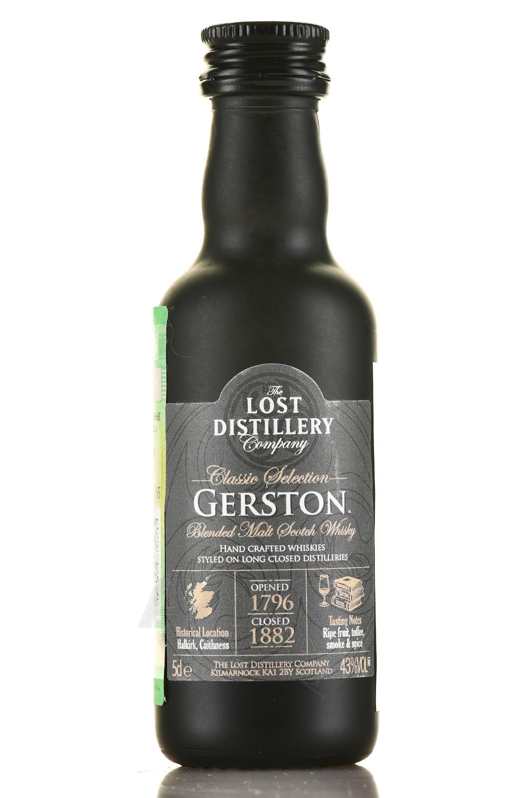 Виски Gerston Classic Selection 0,05 л предлагается в миниатюрной бутылке-шкалике, которую можно приобрести на пробу или для пополнения коллекции алкогольных миниатюр. 43-процентный скотч из шотландского Высокогорья относится к формату Blended Malt, т. е. состоит из односолодовых спиртов с разных хозяйств. Их получают путем сбраживания и перегонки с последующей выдержкой в бочонках разных типов, в том числе повторного наполнения (из-под портвейна, бурбона, хереса), где виски проводит не менее трех лет. В ходе изготовления не применяется процесс холодной фильтрации.