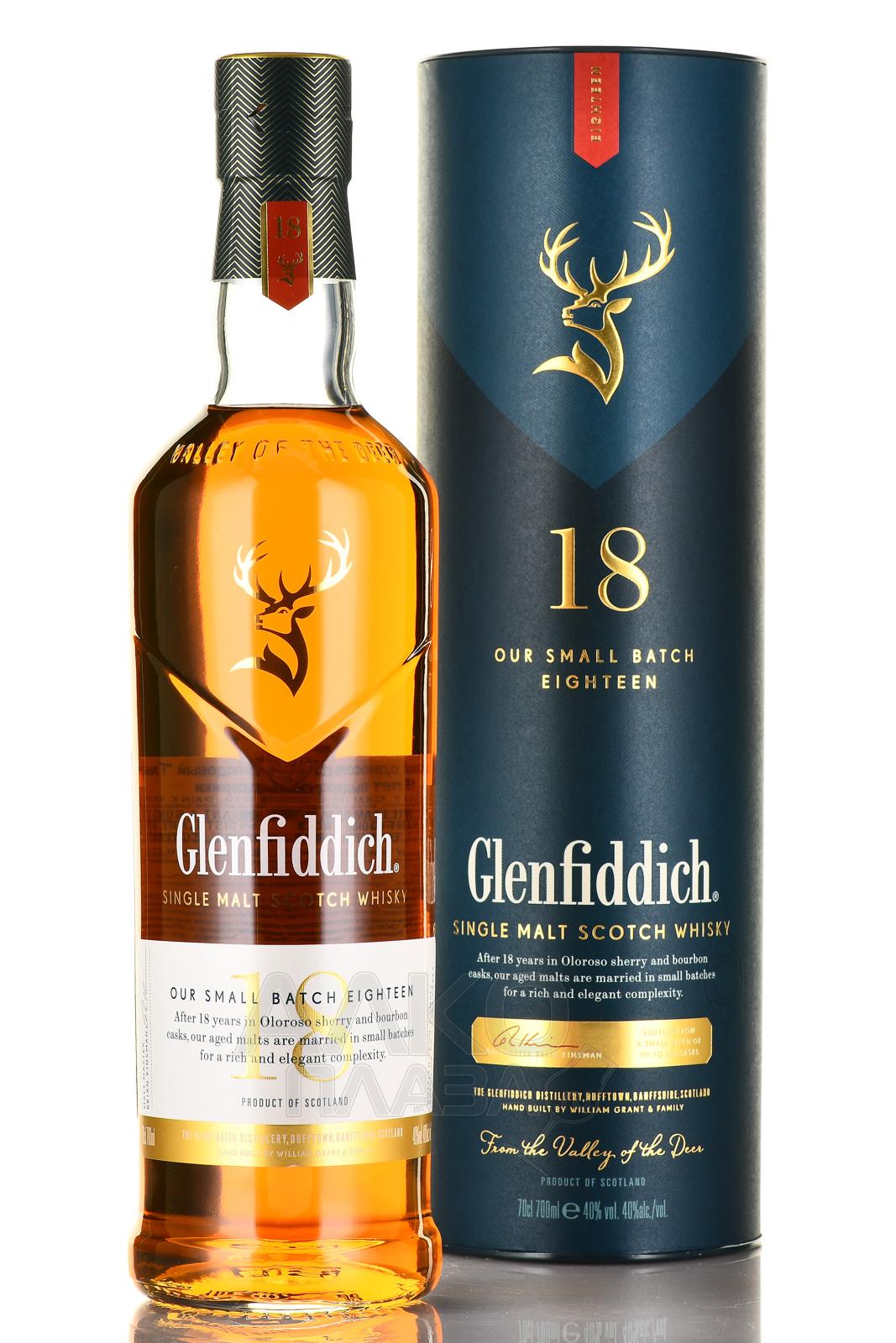 Виски Glenfiddich 18 years 0,7 л в тубе – выдержанный односолодовый скотч Шотландии в сувенирном оформлении. Он станет ценным подарком для коллекционеров марочного алкоголя и ценителей шотландского искусства дистилляции. Напиток создан из дистиллятов, созревавших основную часть времени в американских бочонках из-под бурбона и проходивших финишную отделку в бочках из-под испанского хереса Олоросо. Выдержка осуществляется небольшими партиями и лично контролируется мастером купажа.