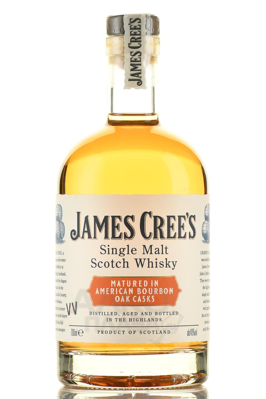Виски James Cree’s Single Malt 0,7 л — скотч гарантированного качества, произведенный в шотландском Высокогорье из тщательно отобранных ячменных спиртов с местных полей. Сырье экологической чистоты обработали по технологии дистилляции и выдержали в бочонках повторного наполнения (из-под бурбона) в течение трех и более лет. Перед бутилированием виски подвергся редукции градуса — его разбавили необходимым для получения 40-процентной крепости количеством очищенной воды.