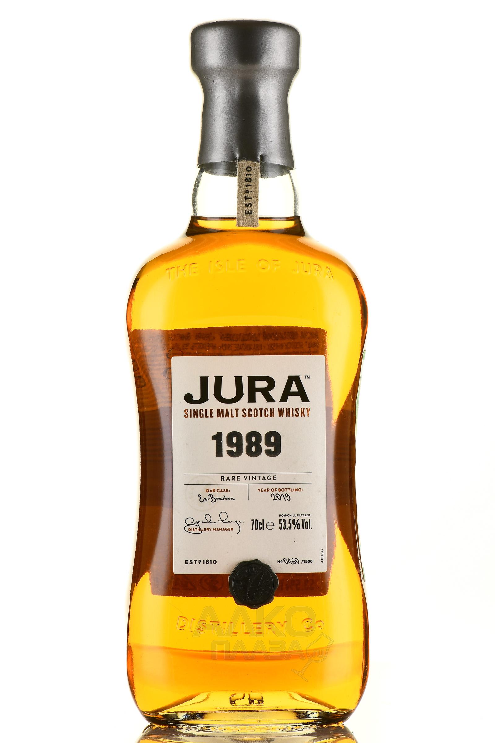 Виски Jura Vintage 1989 г. 0,7 л в д/у – редкий миллезимный сорт, который продается в подарочном ящичке из дерева. Односолодовый напиток выпущен очень ограниченным тиражом – всего 1500 бутылок. Для его изготовления использовался старинный рецепт, который исключал применение торфяного солода. Для выдержки были использованы американские бочки из-под бурбона. Скотч провел в контакте с дубом 30 лет. Винтаж разлит без холодной фильтрации и разбавления водой при бочковой крепости 53,5 градуса. Это солидный презент, который можно вручить по особо торжественному поводу. Подойдет спиртное и на роль подарка имениннику, родившемуся в том же году.