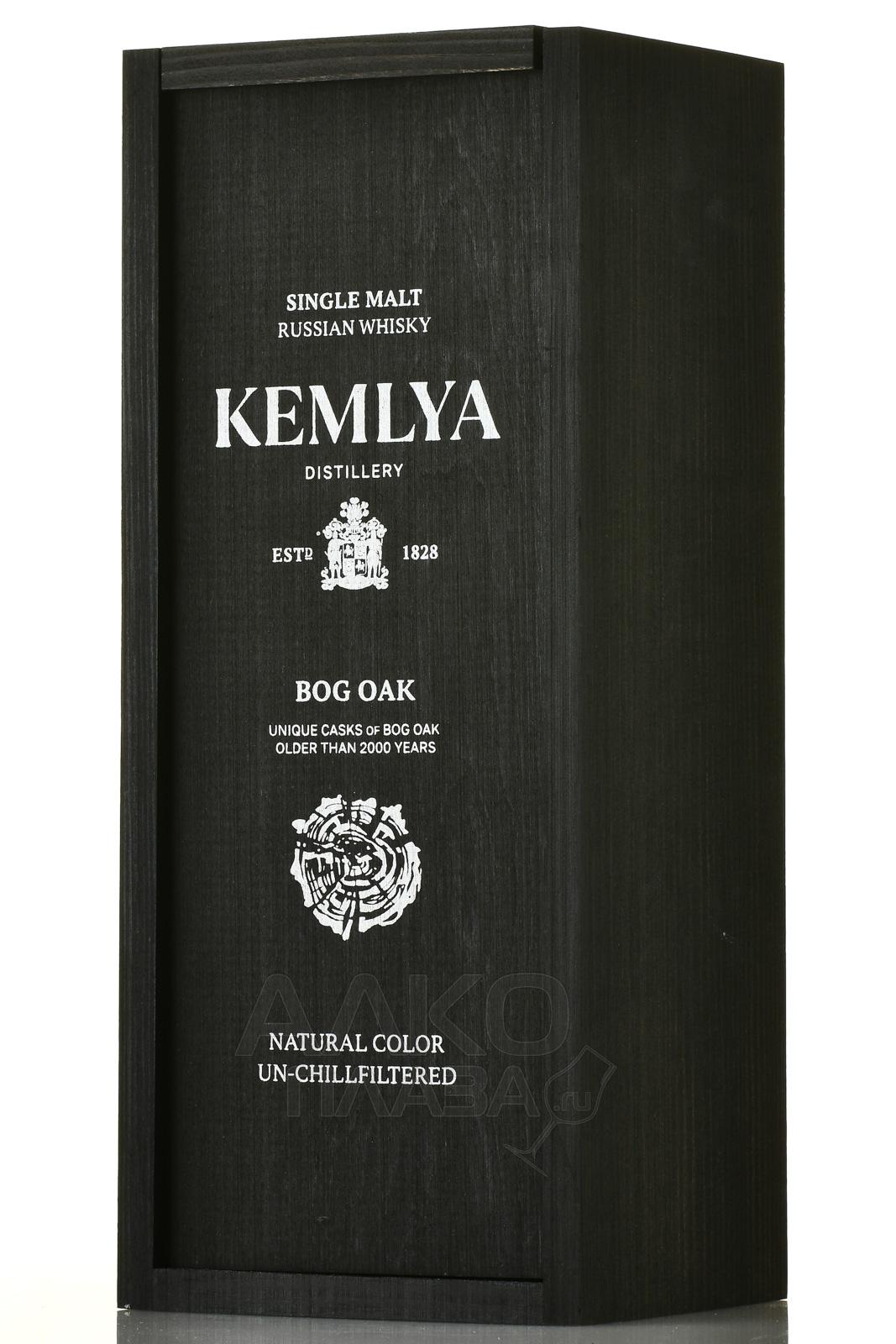 Виски односолодовый Kemlya Bog Oak 0,7 л в д/у — российский релиз 2023 года, не имеющий аналогов. Было выпущено всего 300 бутылок, разлитых из одной бочки №3. На этикетке поставил свою подпись мастер-блендер. Уникальный сингл молт представлен в роскошном деревянном гифт-боксе и может стать отличным подарком для ценителя. Дистилляты были произведены на заводе в мордовском селе Кемля, который по праву считается одним из старейших отечественных предприятий алкоголь промышленности. Основное время (не менее 5 лет) спирты выдерживались в бочках из скального русского дуба, а последние полгода виски находился в бочонках из мореного дуба, который провел пару тысяч лет на дне реки Суры без притока воздуха. Состав древесины поменялся, она пропиталась минеральными веществами, что непосредственным образом сказалось на характере сингл молта. Он не проходил холодную фильтрацию и не подкрашивался карамелью, был разлит при крепости 49%,