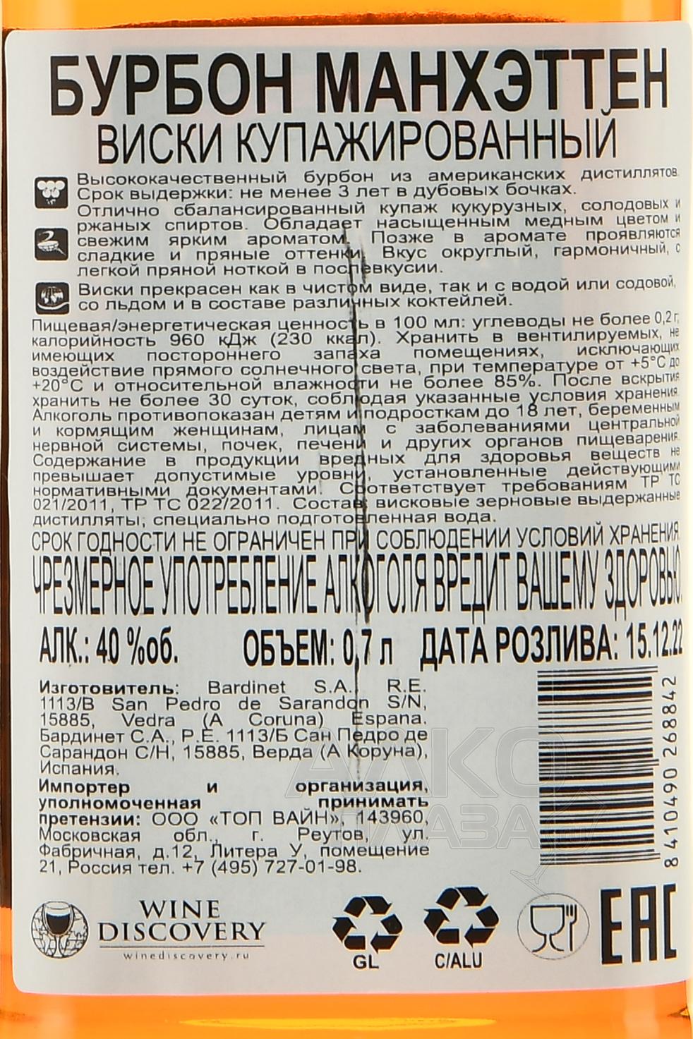 Manhattan Bourbon - виски Манхэттен Бурбон 0.7 л