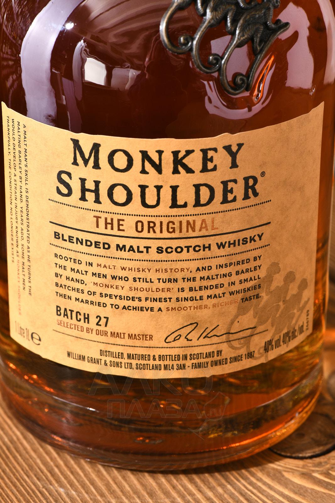 "Monkey Shoulder" вобрал в себя вкусовые оттенки ягод, мёда и ириса. Создатели виски объединили солода с трёх лучших заводов Speyside: Balvenie, Kininvie и Glenfiddich. Выдержка производится в американских бочках из-под бурбона. Бондари компании переделывают поступившие к ним бочки таким образом, чтобы вкусовые качества полученного виски становились всё мягче и нежнее.