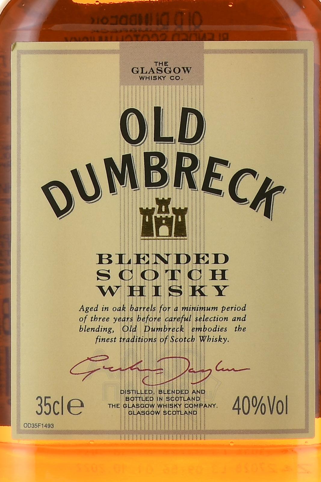 Виски купажированный Old Dumbreck 0,35 л воплощает в себе дух Шотландии, что подчеркивает оформление в традиционном стиле. Миниатюрную версию можно приобрести для знакомства с брендом и в подарок коллекционеру-алкоминималисту. Скотч содержит тщательно отобранные солодовые и зерновые дистилляты, произведенные путем двойной перегонки в медных кубах. Не менее 3 лет они выдерживались в бочках из-под бурбона, затем из них на базе старинной рецептуры был составлен великолепный купаж. Виски бутилировали при крепости 40%.