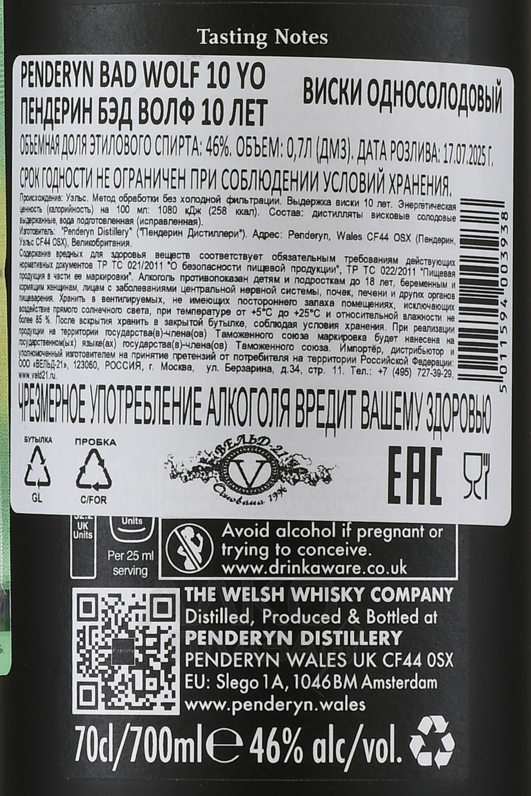 • Penderyn Bad Wolf 10 Years - виски Пендерин Бэд Волф 10 лет 0.7 л в п/у