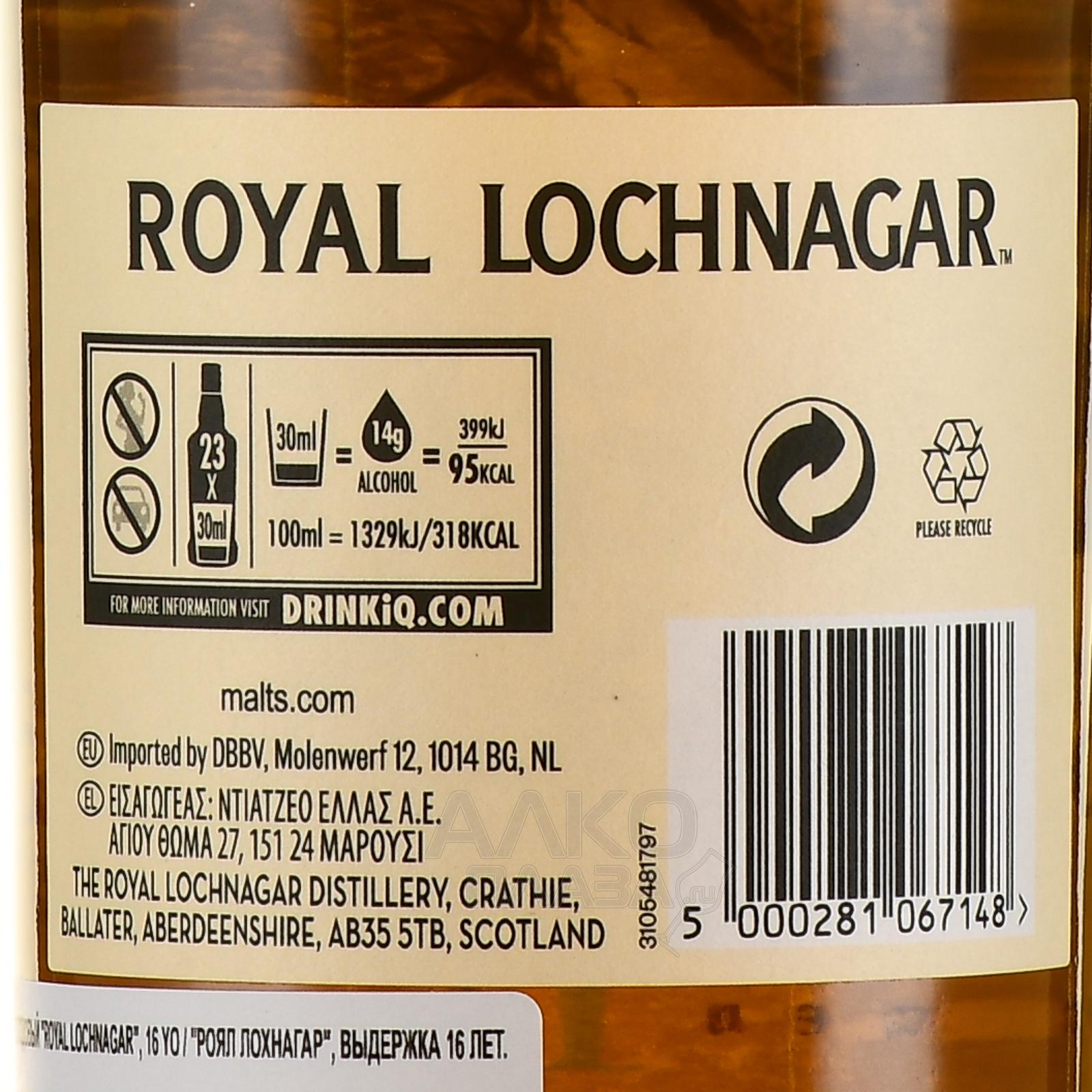Виски Royal Lochnagar 16 Years 0,7 л в тубе — редкий сингл молт из коллекции специальных релизов 2021 года от Diageo. Он был выпущен очень ограниченным тиражом. В купаж вошли тщательно отобранные, хорошо выдержанные дистилляты, которые созревали в бочках из американского и европейского дуба. Возраст самых молодых спиртов составил 12 лет, они смешивались с более старыми из собственных запасов вискикурни Лохнагар. Ее отметила своим покровительством королева Виктория, отсюда слово Royal («королевский») в названии виски. По легенде, в тумане, окутывающем вискикурню, видели могучего белого жеребца. Именно это мифическое животное изображено на этикетках коллекционного скотча (работа иллюстратора Кена Тейлора). Виски в стильной подарочной тубе стоит выбрать на роль статусного презента для ценителя.
