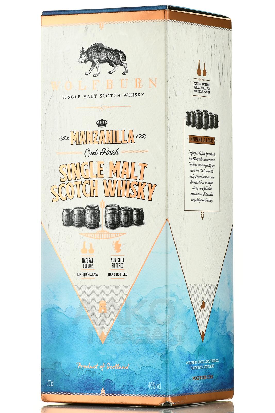 Виски односолодовый Wolfburn Manzanilla Cask Finish 0,7 л в п/у — лимитированный релиз 2024 года, выпущенный в количестве 1900 бутылок. Оригинальный сингл молт был произведен на одной из самых северных вискикурен Шотландии, которая находится на территории Хайленда (Высокогорье). Основная выдержка проходила в классических бурбонных бочках, а финишная отделка — в бочонках из-под испанского хереса Мансанилья. Это белая сухая разновидность из винограда Паломино Фино, выдерживавшаяся под флором. Ее делают только в муниципалитете Санлукар-де-Баррамеда. Минимальный срок выдержки дистиллятов — 7 лет. Розлив в бутылки осуществлялся вручную без холодной фильтрации. Хересные черты нашли яркое отражение в букете виски. Незаурядный алкоголь в стильном гифт-боксе как нельзя лучше подойдет на роль праздничного подарка.
