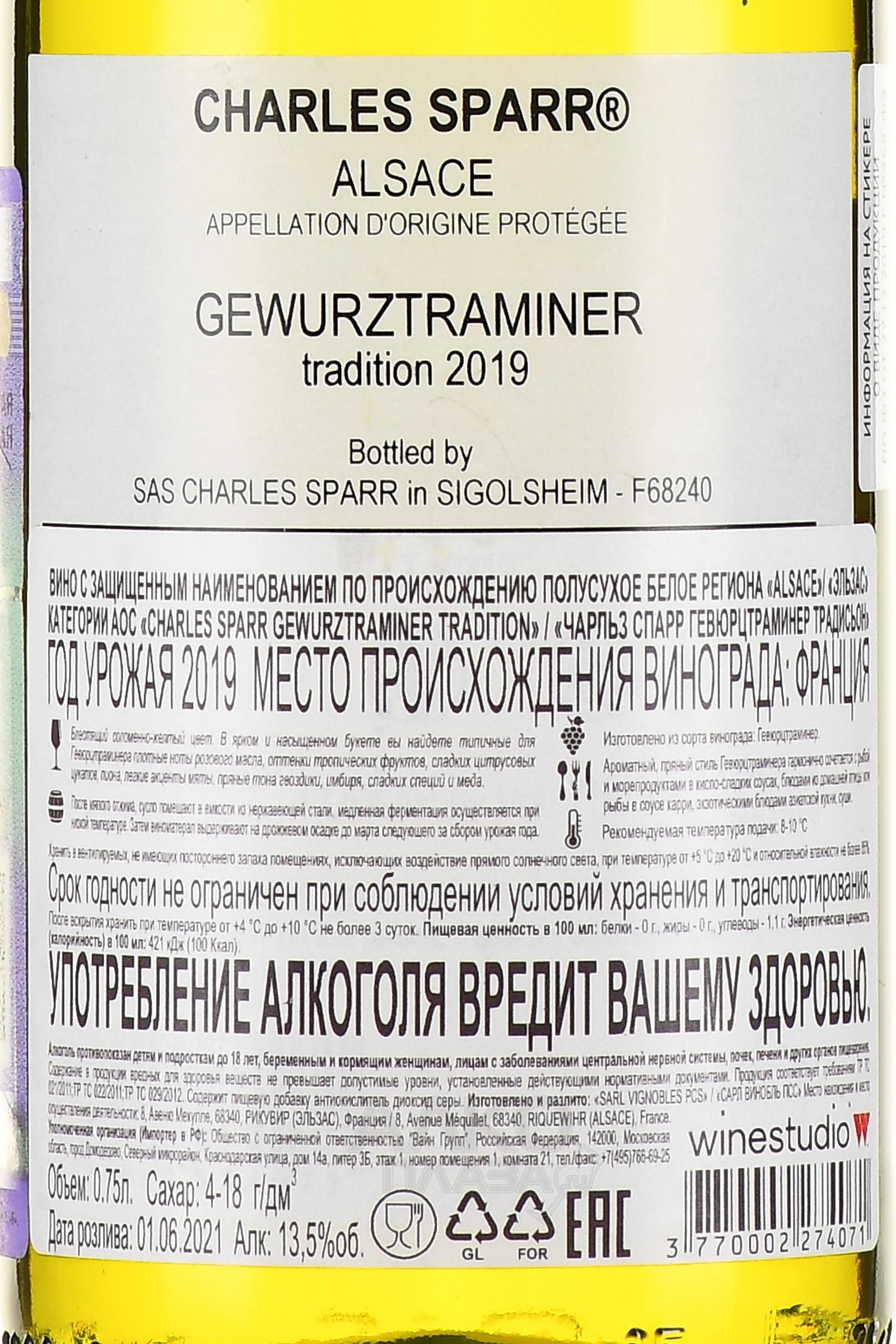 Charles Sparr Gewurztraminer Tradition - вино Чарльз Спарр Гевюрцтраминер Традисьон 0.75 л белое полусухое