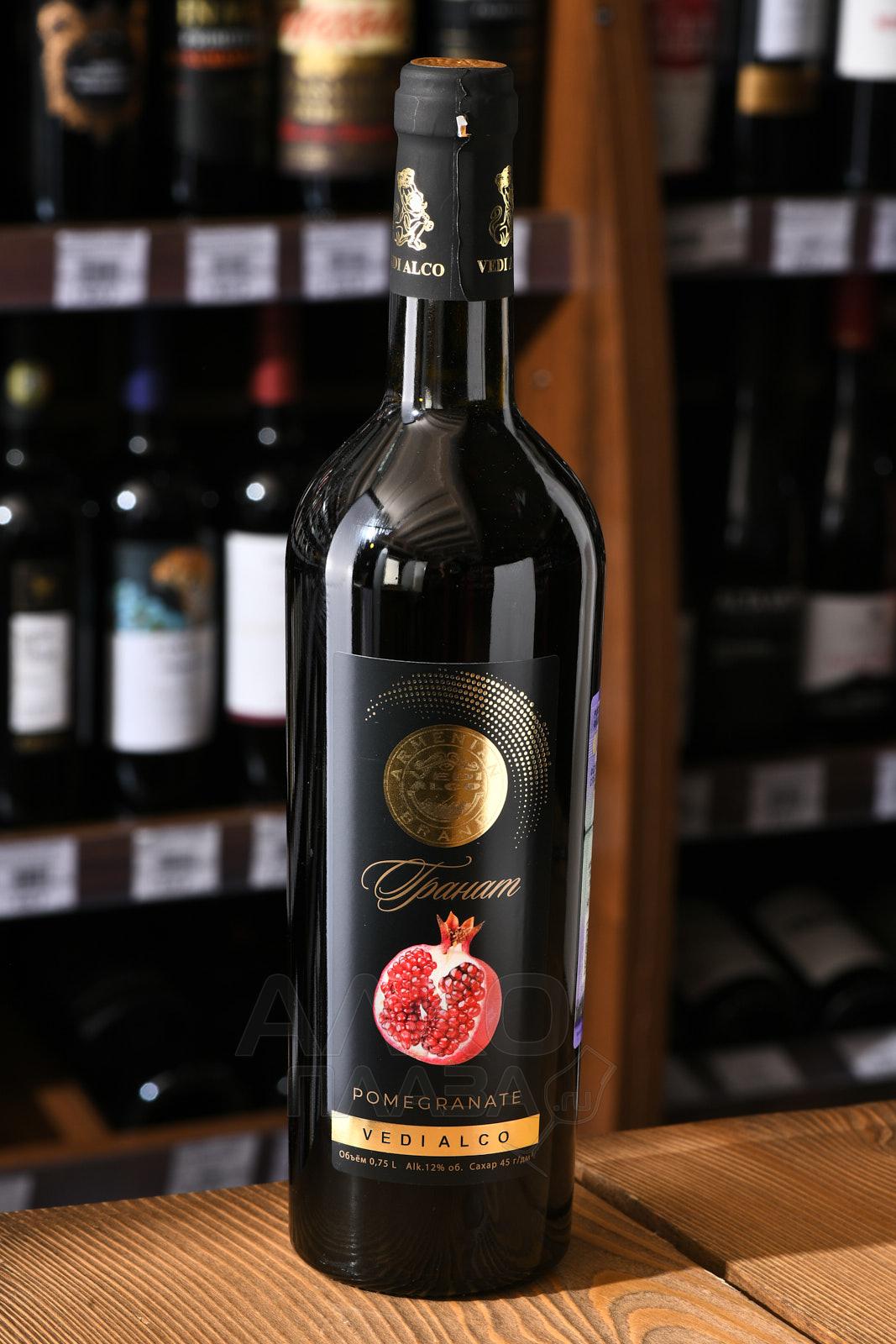 Красное полусладкое вино Vedi Alco Pomegranate 0,75 л создается на территории знаменитой Араратской долины в Армении. Здесь расположены лучшие сады страны, дающие качественное сырье для сегмента виноделия. Используются несколько сортов гранатов с отличающимися вкусовыми характеристиками. Это позволяет добиваться многогранного букета у вина. Собранный вручную урожай подвергается ферментации в стальных чанах при постоянной температуре. Процесс растягивается на несколько недель, после чего напиток некоторое время отдыхает, затем осветляется и разливается в бутылки.