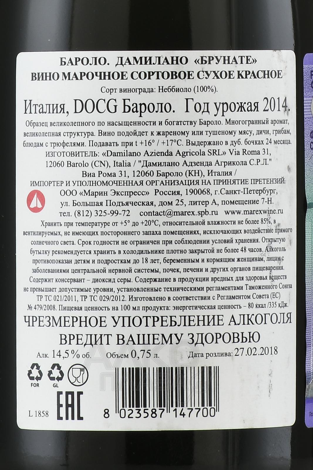 / Damilano Сайт alcoplaza.ru содержит информацию, не рекомендованную для лиц, которые не достигли возраста 18 лет. Чтобы осуществить вход на сайт, Вам необходимо подтвердить свой совершеннолетний возраст. Сведения, размещенные на сайте , не являются рекламой, носят исключительно информационный характер, и предназначены только для личного использования. Информация на сайте не является публичной офертой.