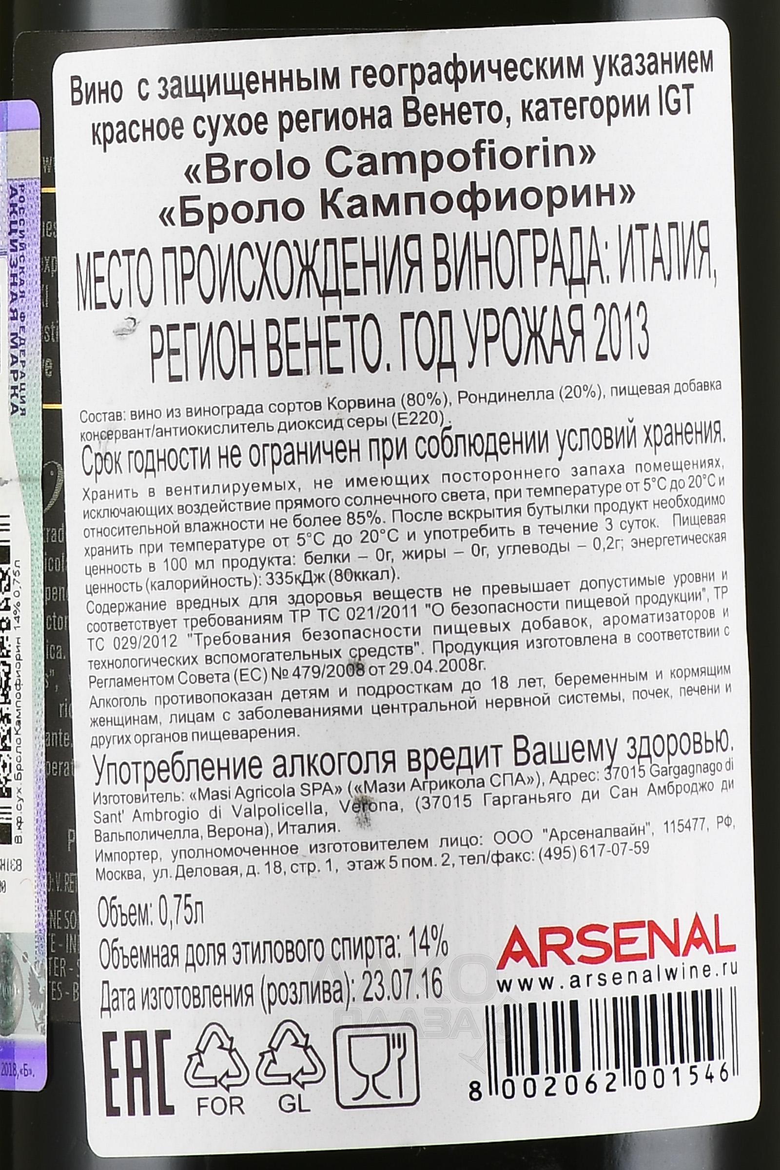 Masi Brolo Campofiorin Oro - вино Мази Броло Кампофиорин Оро 0.75 л красное сухое