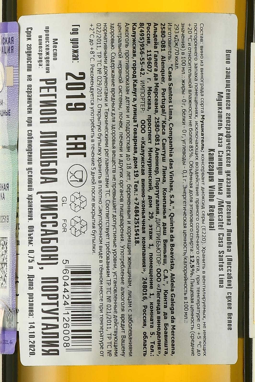 Casa Santos Lima Muscatel - вино Каза Сантос Лима Мушкатель 0.75 л белое сухое
