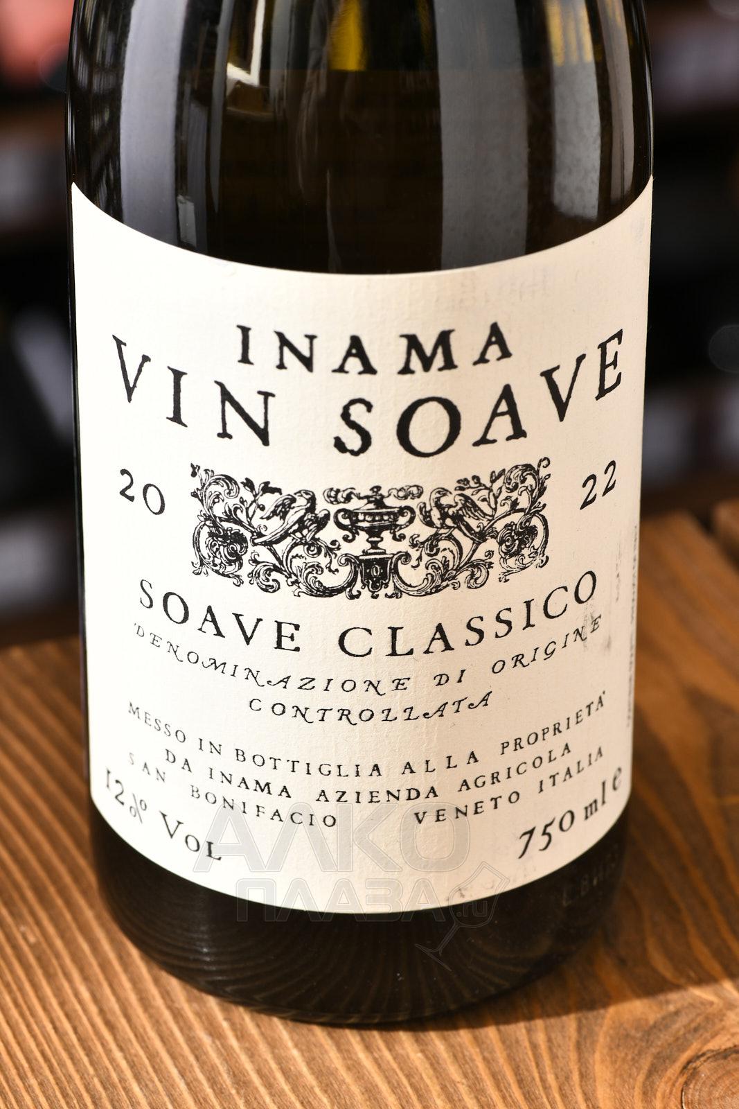 Белое сухое вино Inama Soave Classico 0,75 л представляет из себя напиток из престижной зоны Соаве, производимый семейной компанией. Для изготовления используют виноград, собранный ручным способом с участка площадью 17 гектаров, возраст которого превышает 30 лет. На винодельне производят гребнеотделение и деликатное прессование с последующей алкогольной ферментацией в стальных чанах. Прежде чем поступить в продажу, проводится выдержка в нейтральной среде на протяжении 8 месяцев.
