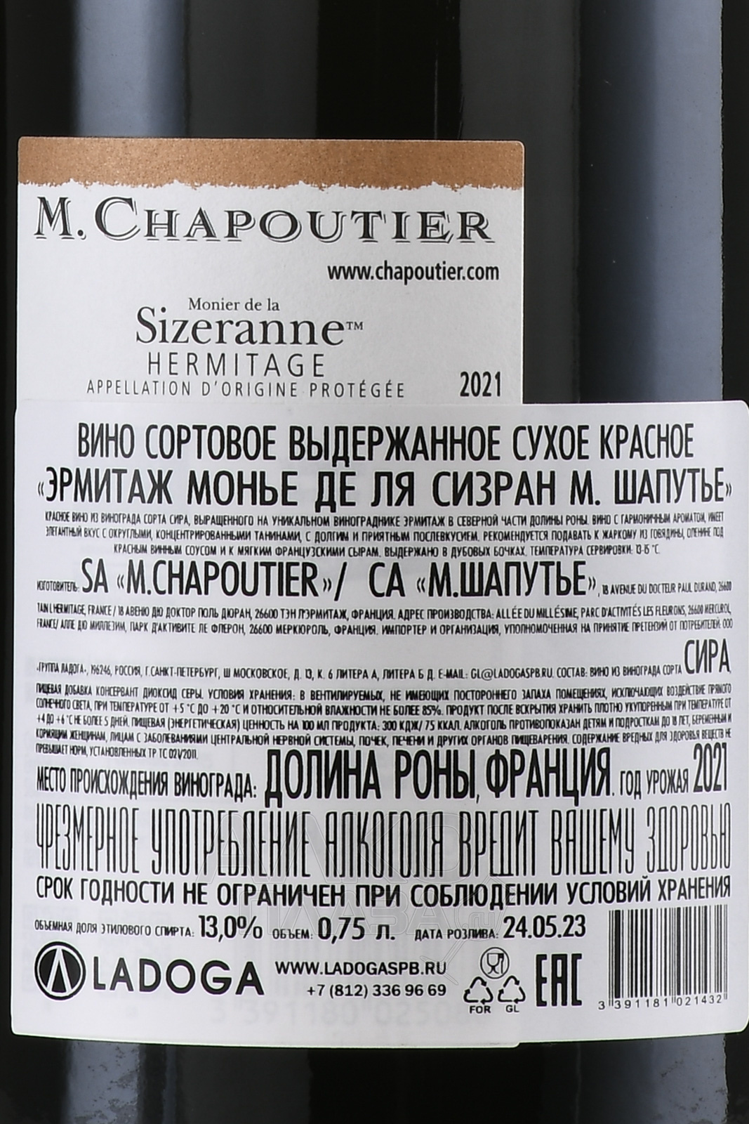 Красное сухое вино M.Chapoutier Hermitage Monier de la Sizerannee 2014 0,75 л - напиток производимый одним из самых известных виноделов Франции - Мишелем Шапутье. Урожая собирают исключительно ручным способом в апелласьон Эрмитаж, который признан лучшим в северной части долины Роны. Теплая весна способствовала раннему цветению но влажное и холодное лето сильно сократило объемы урожая. По завершении сбора грозди сортируют и деликатно прессуют после чего подвергают алкогольному брожению в дубовой таре. Созревание готового вина проходит в дубовых бочках на протяжении от 12 до 14 месяцев, при чем треть из них новые.
