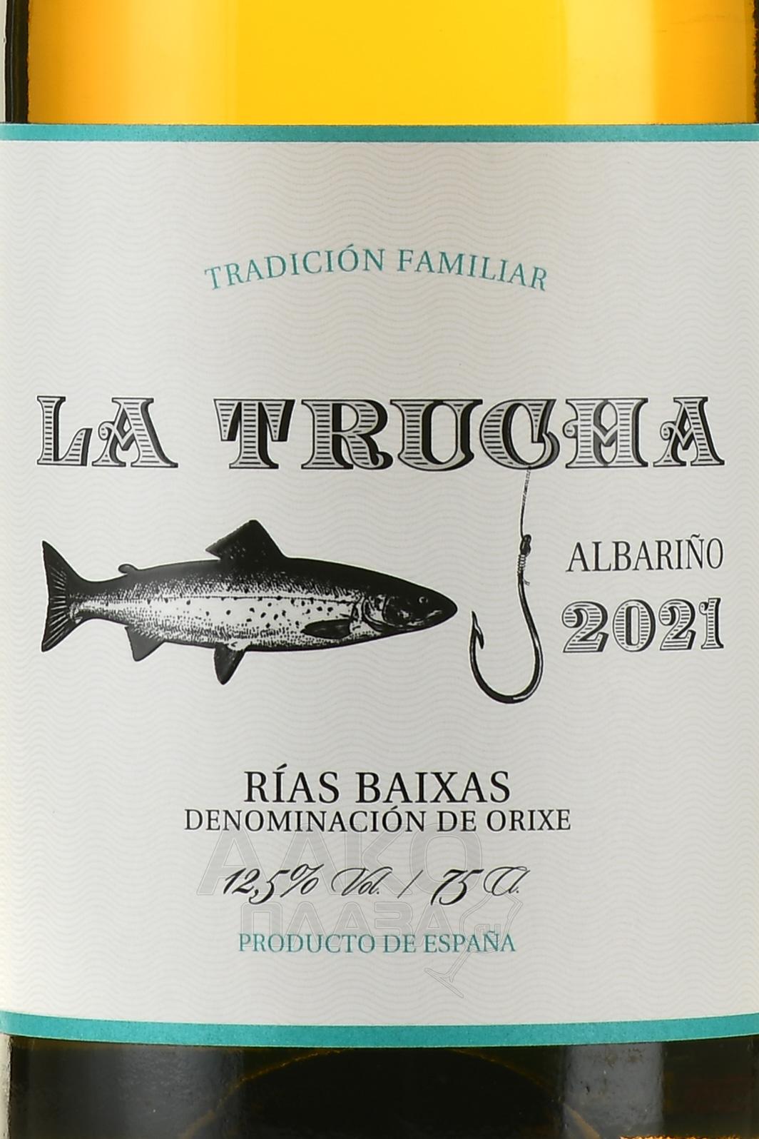 Привлекательное галисийское вино из сорта Альбариньо La Trucha, что на испанском значит форель. Виноградник с 25-летними лозами находится в апелласьоне Риас Байшас. Урожай собран вручную после набора нужных кондиций зрелости ягод. Процесс алкогольного брожения производился в стальных чанах при постоянной температуре 16 С. После была выдержка на дрожжевом осадке от 3 до 6 месяцев.