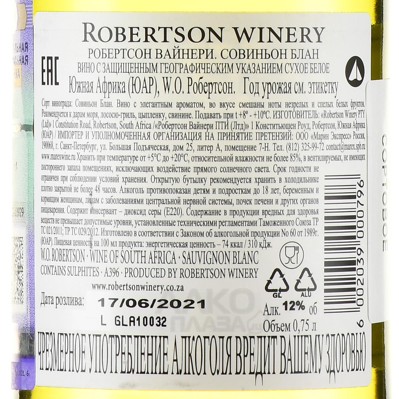 / Robertson Winery Сайт alcoplaza.ru содержит информацию, не рекомендованную для лиц, которые не достигли возраста 18 лет. Чтобы осуществить вход на сайт, Вам необходимо подтвердить свой совершеннолетний возраст. Сведения, размещенные на сайте , не являются рекламой, носят исключительно информационный характер, и предназначены только для личного использования. Информация на сайте не является публичной офертой.