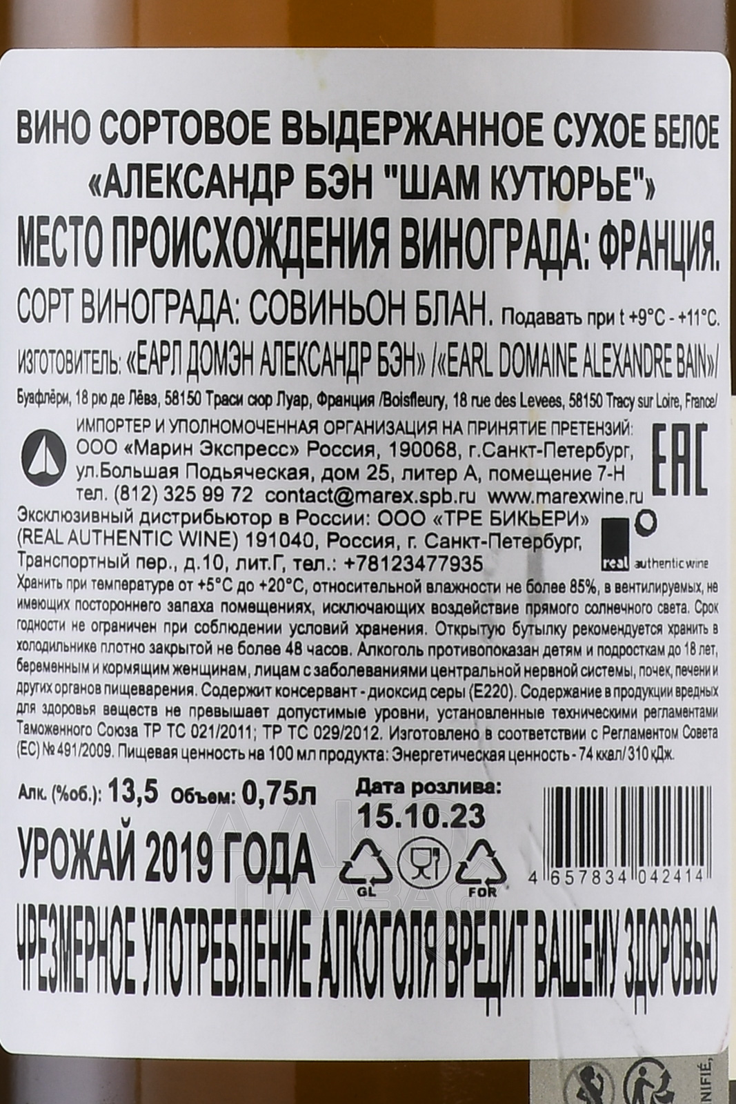 Alexandre Bain Champ Couturier - вино Александр Бэн Шам Кутюрье 0.75 л белое сухое