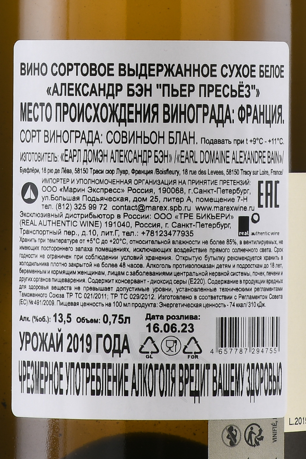 Alexandre Bain Pierre Precieuse - вино Александр Бэн Пьер Пресьёз 0.75 л белое сухое
