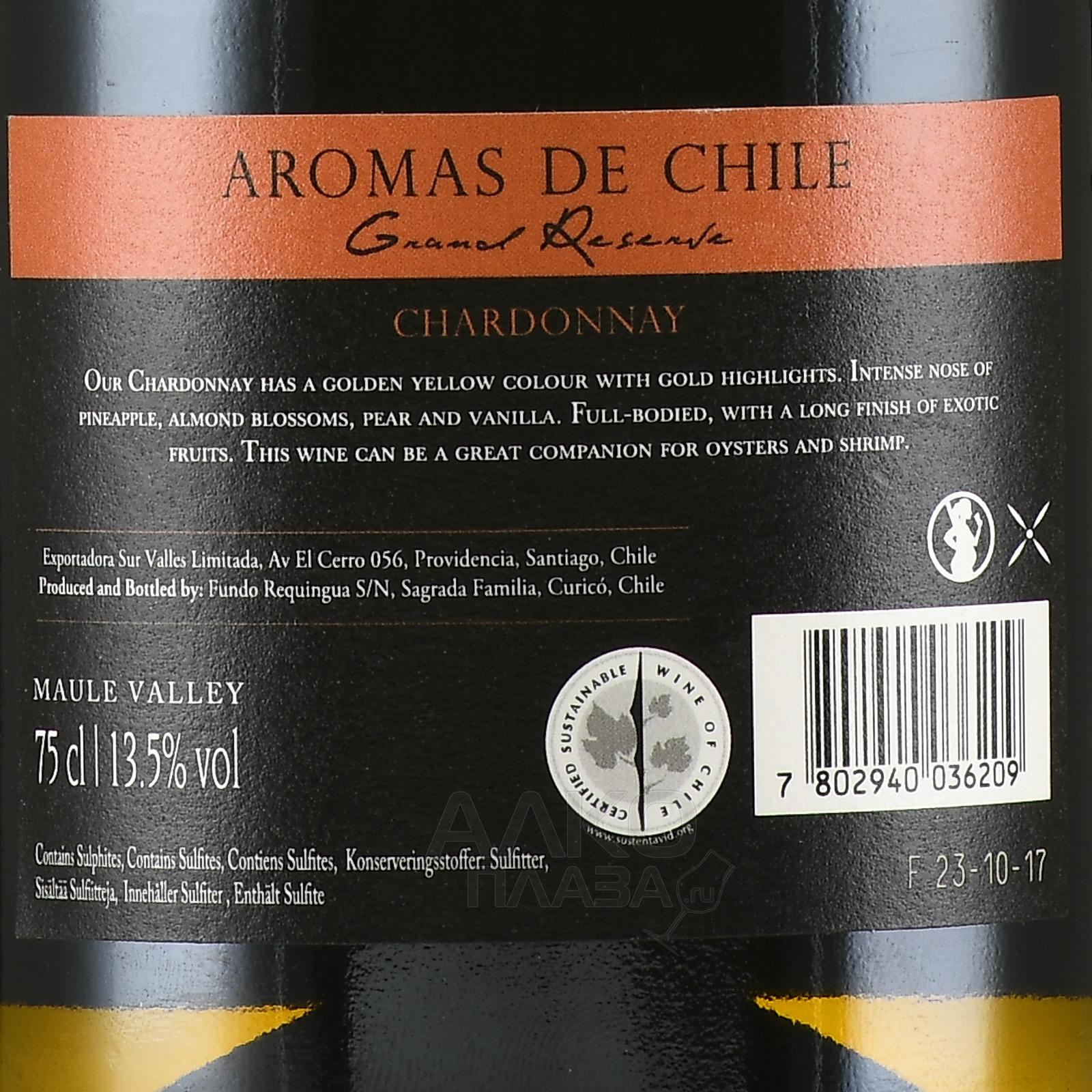 Белое сухое вино 2016 г. с уровнем содержания алкоголя 13,5% изготовили в чилийской Долине Маули из винограда одного урожайного года, выращенного на почвах с вулканическими породами. Свежие ягоды, собранные на пике зрелости, ферментировались при контролируемой температуре, а срок выдержки составил 8 месяцев.