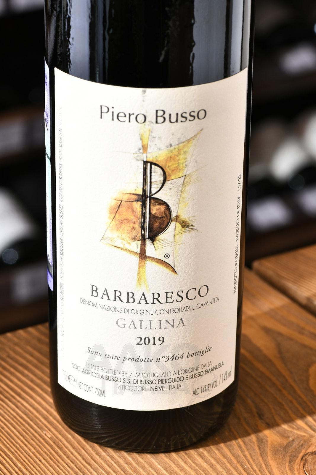 Красное сухое вино Barbaresco Gallina Piero Busso 2019 г. 0,75 л – премиальный сорт спиртного в одном из традиционных стилей щедрого Пьемонта. Напиток происходит с виноградников в MGA (дополнительное географическое наименование) Галлина в провинции Нейве. Лозы возрастом от 25 до 50 лет здесь культивируются на высоте до 240 метров над уровнем моря на почвах, состоящих преимущественно из мергеля. Ила тут меньше, чем в соседнем Альбезани, но при этом больше песка, а юго-западная экспозиция обеспечивает обильное солнечное освещение, благоприятствующее идеальному созреванию плодов. Винификации подвергли плоды ручного сбора. Сырье сбраживалось на природных дрожжах в деревянных чанах, а очищенное от мезги путем прессования сусло выдерживалось сначала в больших дубовых бочках и затем – в бутылках на протяжении 6-12 месяцев. Мировой винный эксперт Антонио Галлони присудил вариации 91 балл, назвав ее легкой и прямолинейной.