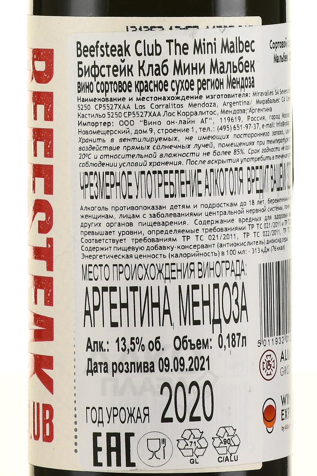 Красное сухое вино Beefsteak Club The Mini Malbec 0,187 л – оригинальный вариант подарка для коллекционеров алкоминималистики. Бренд появился как напоминание о традиции обеденных клубов XVIII-XIX веков, члены которых прославляли бифштекс в качестве символа процветания и свободы. Напиток представлен одним сортом винограда, который выращивается в высокогорных районах провинции Мендоса. В погребе сырье проходит классическую винификацию и выдержку в дубовых бочонках.