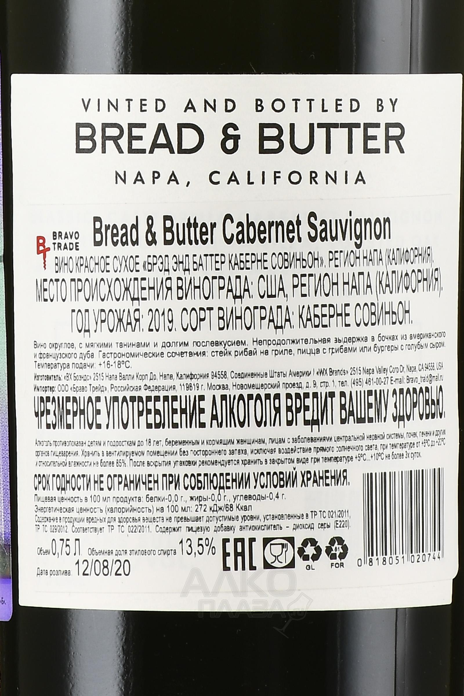 Bread & Butter Cabernet Sauvignon - вино Брэд энд Баттер Каберне Совиньон 0.75 л красное сухое