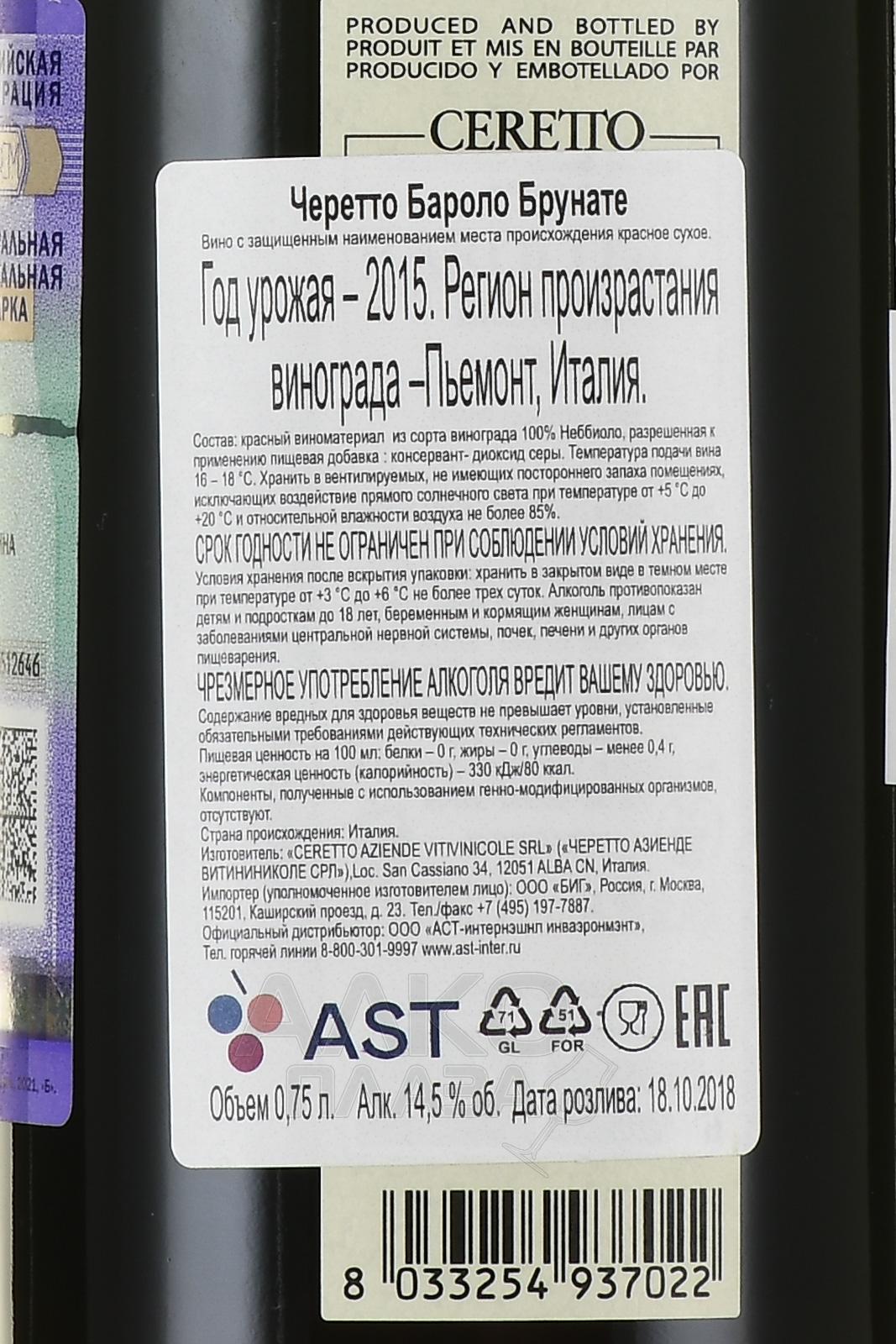 Красное сухое вино Ceretto Barolo Brunate 0,75 л изготовлено из традиционного пьемонтского винограда, выращенного в муниципалитете Ла Морра. Ягоды собрали с исторического виноградника площадью 5,3 га, возделываемого органическими методами. В погребе сырье подвергли традиционной винификации при контролируемой температуре. Щедрый терруар, ответственный подход к обработке лоз и вдумчивая технология производства позволили создать шедевр итальянского виноделия.