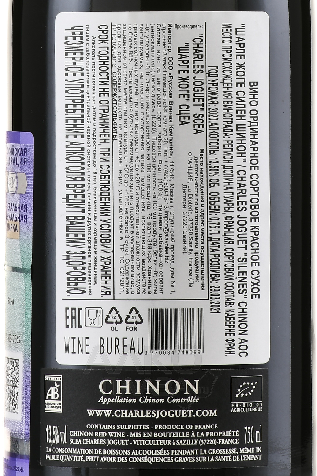 Charles Joguet Silenes Chinon - вино Шарле Жоге Силен Шинон 0.75 л красное сухое