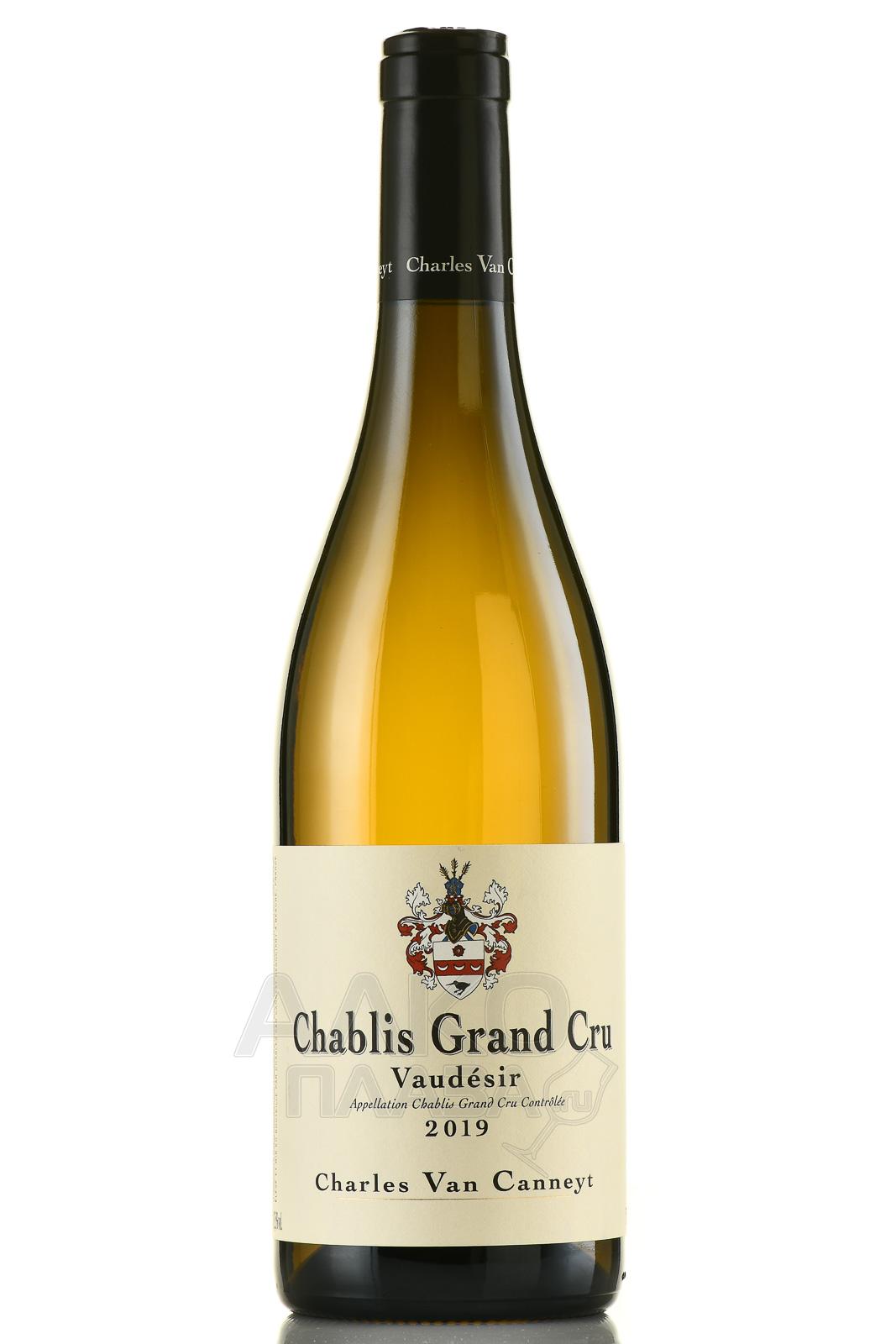 Белое сухое вино Charles Van Canneyt Chablis Grand Cru Vaudesir AOC 2019 г. 0,75 л — классическое шабли с узнаваемым тонким и изящным стилем, произведенное из сорта Шардоне с виноградника Vaudesir категории Гранд Крю. Он разбит в верхней части холма, откуда хорошо виден весь апелласьон Шабли. Половина лоз растет на южном склоне, половина — на юго-западном. Посадки хорошо защищены от холодных ветров и получают много света. Местные известняковые почвы содержат солидную дою глины. В 2019 году погода была сухой и теплой, но не такой жаркой, как в предыдущем сезоне. Виноград вызрел немного позже, и его сбор длился дольше. Грозди снимали вручную, осуществлялась тщательная сортировка. Винификация протекала по классическому сценарию и включала в себя продолжительную выдержку.