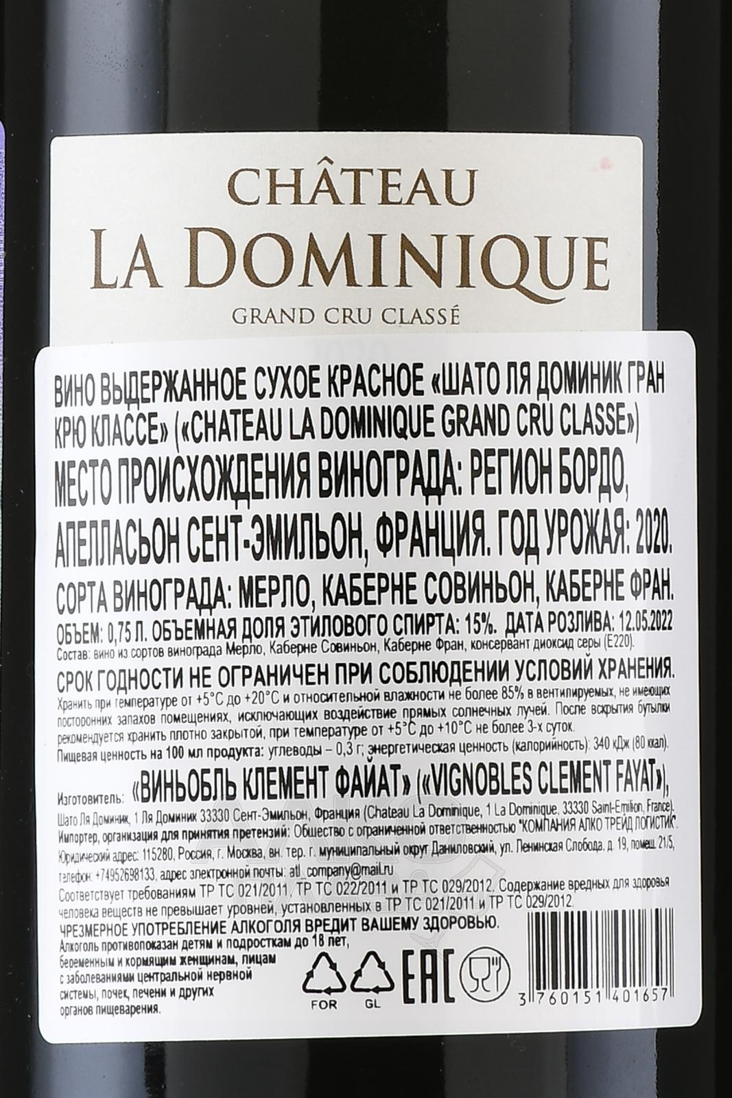 Chateau la Dominique Grand Cru Classe - вино Шато Ля Доминик Гран Крю Классе 0.75 л красное сухое