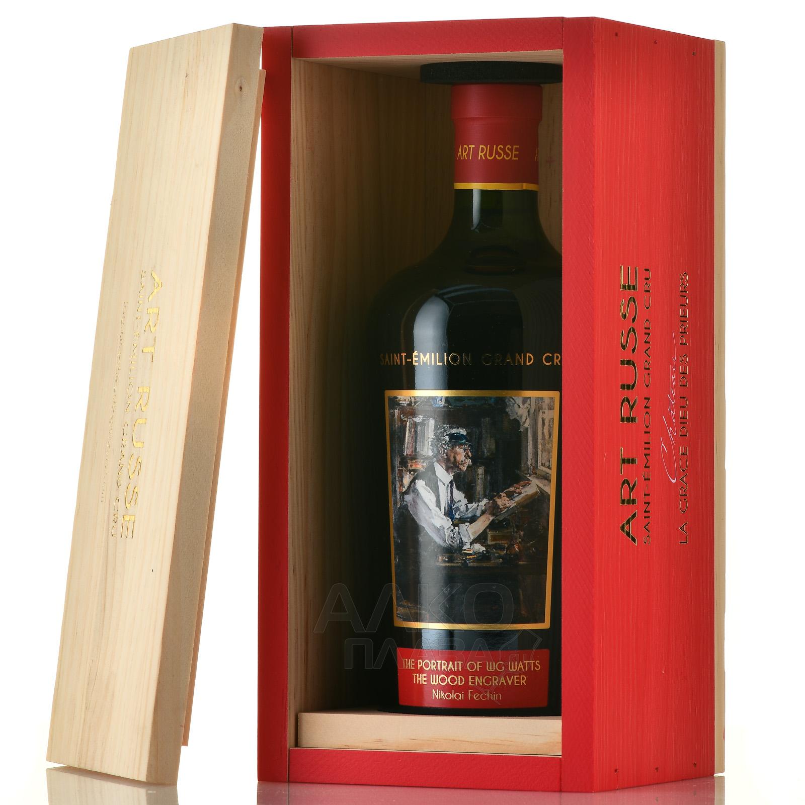 Красное сухое вино Chateau La Grace Dieu des Prieurs Art Russe 2016 г. 0,75 л в д/у — это совместный проект именитого производителя из Бордо и фонда из России, который соединил французское виноделие и российскую живопись. На этикетках брендовых бутылок, упакованных в деревянные подарочные коробки, — знаменитые работы русских художников. Шато La Grace Dieu des Prieurs, которое было основано в 1885 году, создало вино защищенного наименования места происхождения АОС Сент-Эмильон Гран Крю. Красное сухое вино производится из купажа Мерло и Каберне Фран одного года сбора, выращенного в Бордо. По окончании ферментации виноградное сусло попадает из стальных чанов в дубовые бочки, установленные в погребе компании. Выдержка проходит в бочках из древесины дуба в течение 20 месяцев.