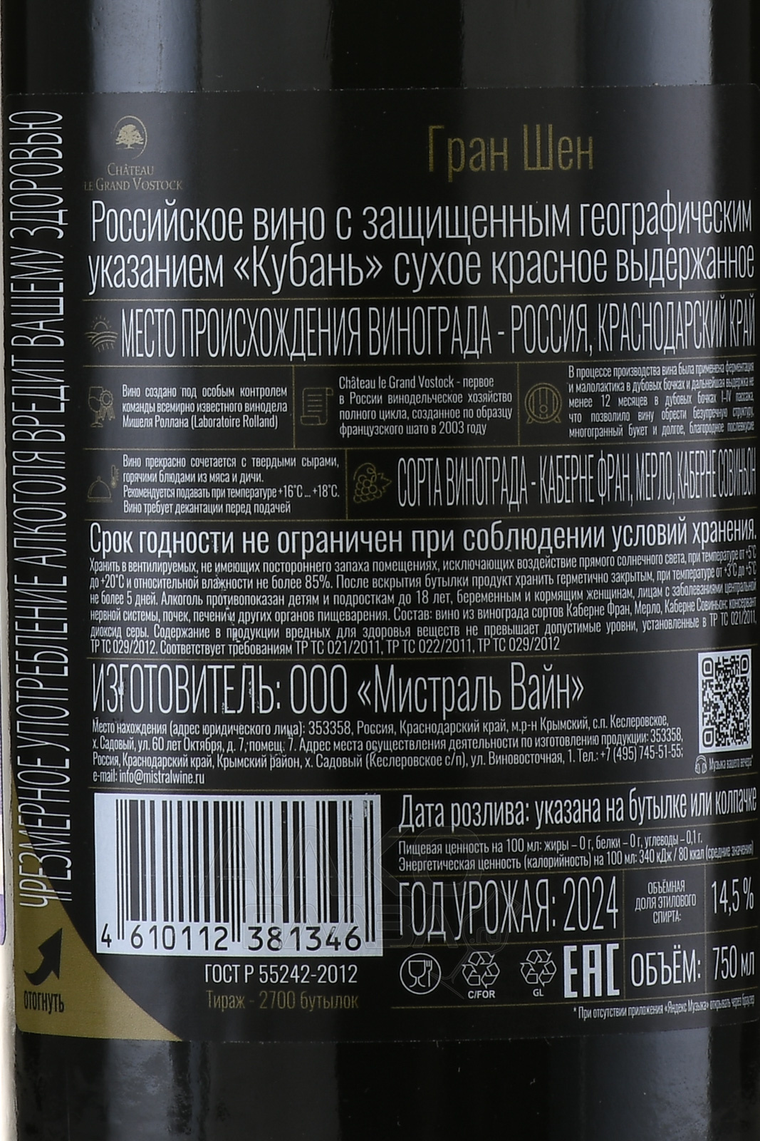Chateau le Grand Vostock Grand Chene - вино Шато ле Гран Восток Гран Шен 0.75 л красное сухое