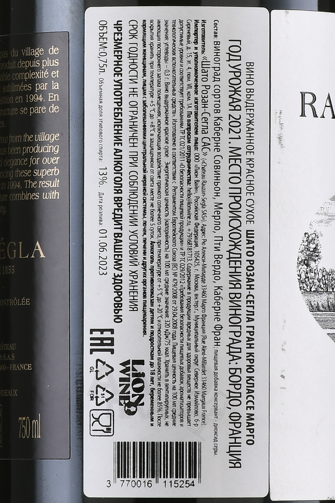 / Chateau Rauzan-Segla Сайт alcoplaza.ru содержит информацию, не рекомендованную для лиц, которые не достигли возраста 18 лет. Чтобы осуществить вход на сайт, Вам необходимо подтвердить свой совершеннолетний возраст. Сведения, размещенные на сайте , не являются рекламой, носят исключительно информационный характер, и предназначены только для личного использования. Информация на сайте не является публичной офертой.