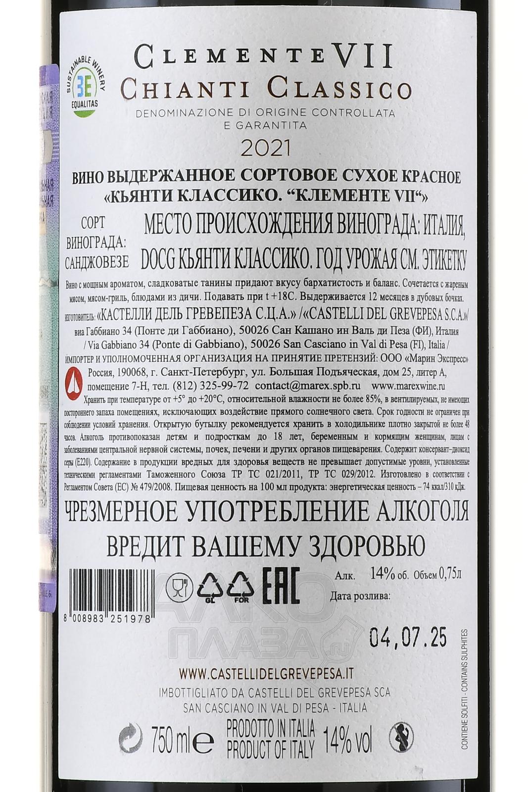 Clemente VII Chianti Calssico - вино Кьянти Классико Клементе VII 0.75 л красное сухое