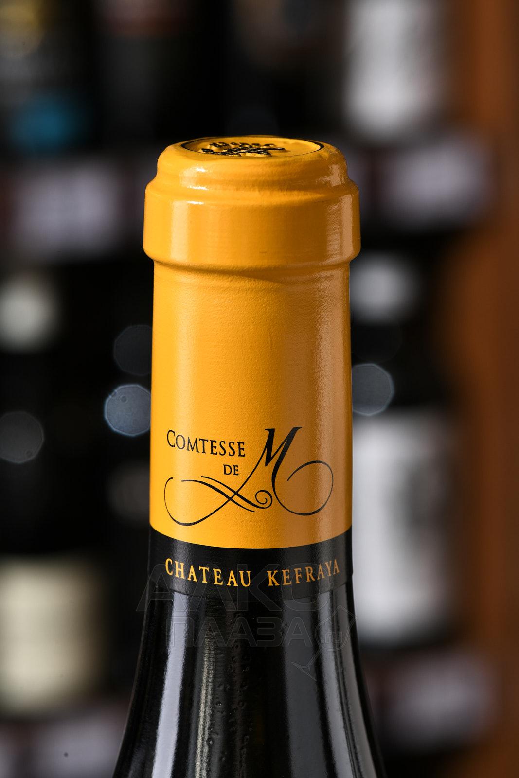 Белое сухое вино Контесс де М Кефрайя 2014 г. 0,75 л — марочный ливанский напиток, производимый из ассамбляжа Вионье и Шардоне, которые поспели на плантациях компании в долине Бекаа, на богатых глинисто-известняковыми, меловыми, песчаными и щебнистыми почвами. По окончании прессования вино ферментируют в чанах из стали при термоконтроле. А выдерживается ливанский алкоголь с 14-градусным содержанием спирта в барриках из древесины французского дуба около двух лет, при этом 18 процентов бочек являются новыми.