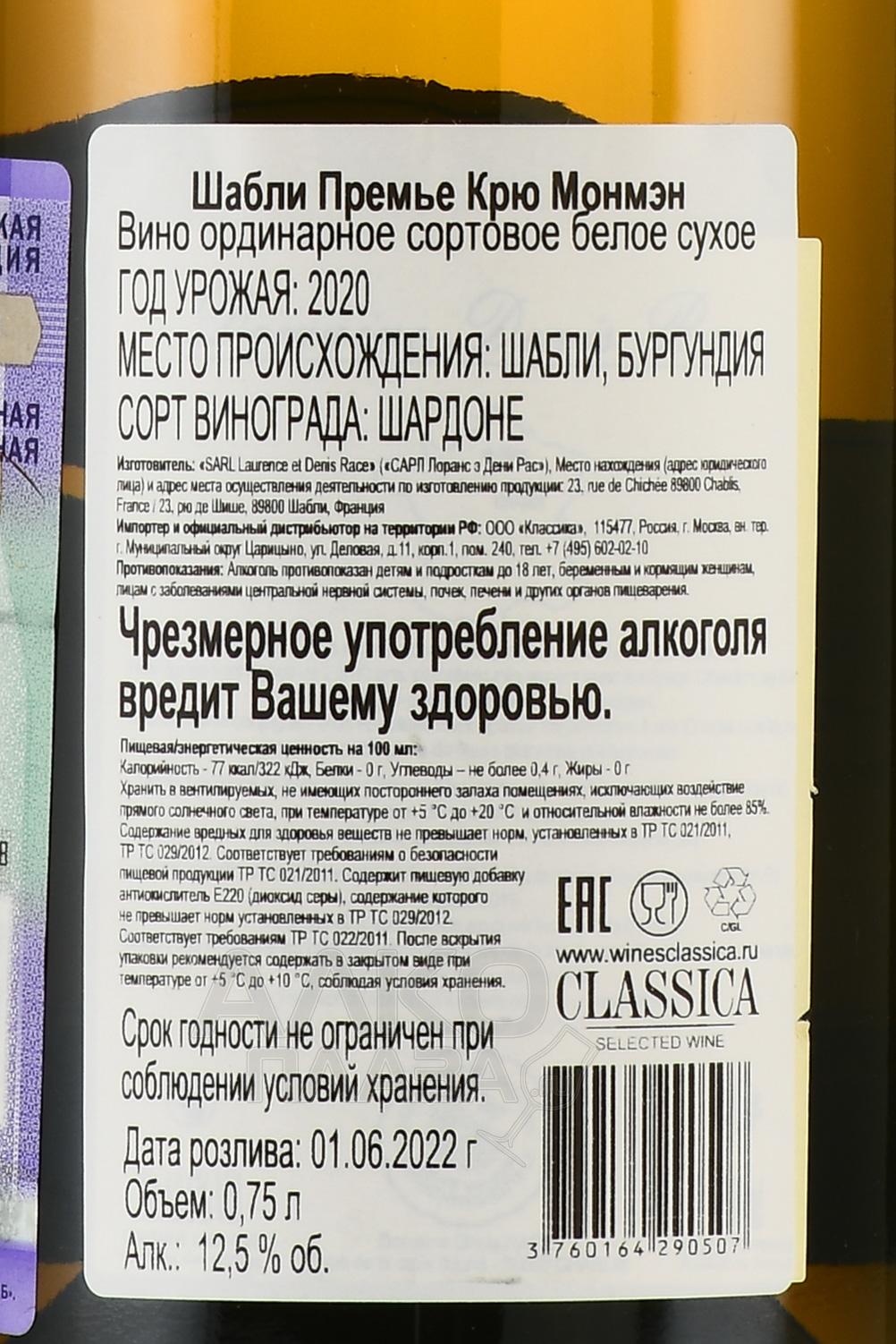 Белое сухое вино Domaine Denis Race Chablis 1er Cru Montmains 0,75 л оценят по достоинству приверженцы классического стиля. Великолепный терруарный напиток происходит с бургундского виноградника уровня Премьер Крю, расположенного на широком склоне на левом берегу реки Серен. Винификация в стальных резервуарах подчеркивает красоту флагманского белого винограда Бургундии и позволяет сохранить хрустящую свежесть, залогом которой являются знаменитые киммериджские почвы региона.