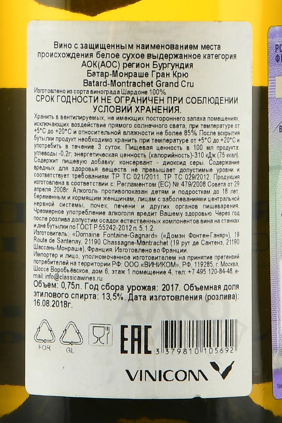 / Domaine Fontaine-Gagnard Сайт alcoplaza.ru содержит информацию, не рекомендованную для лиц, которые не достигли возраста 18 лет. Чтобы осуществить вход на сайт, Вам необходимо подтвердить свой совершеннолетний возраст. Сведения, размещенные на сайте , не являются рекламой, носят исключительно информационный характер, и предназначены только для личного использования. Информация на сайте не является публичной офертой.