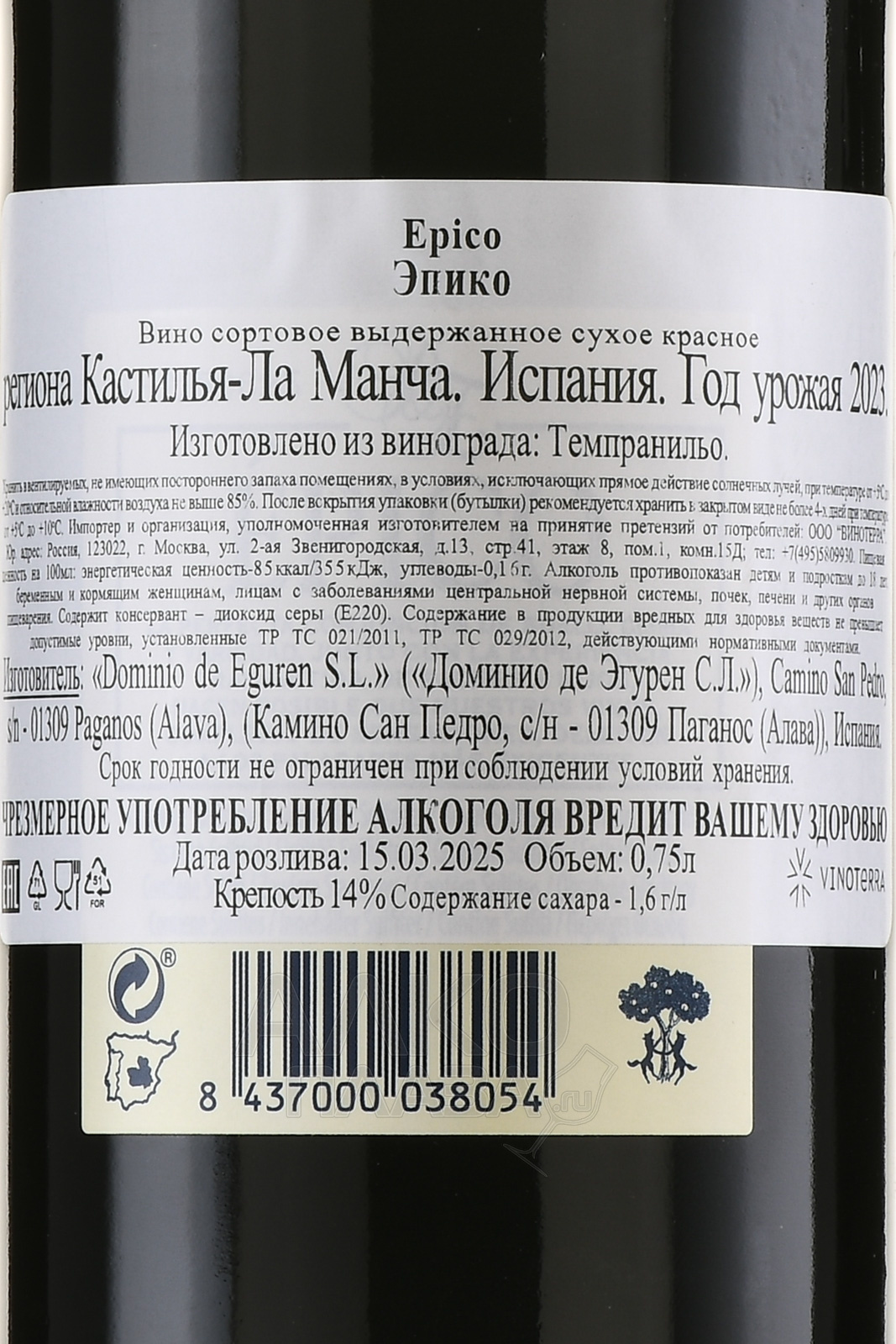 Dominio de Eguren Epico Tempranillo - вино Доминио де Эгурен Эпико Темпранильо 0.75 л красное сухое