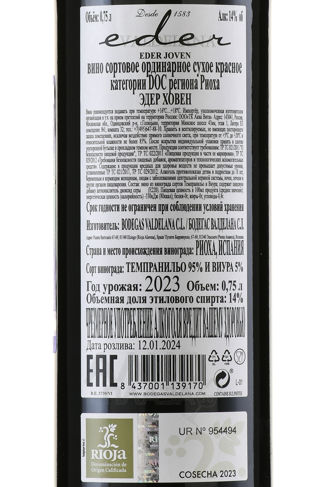 Eder Joven Rioja - вино Эдер Ховен Риоха 0.75 л красное сухое