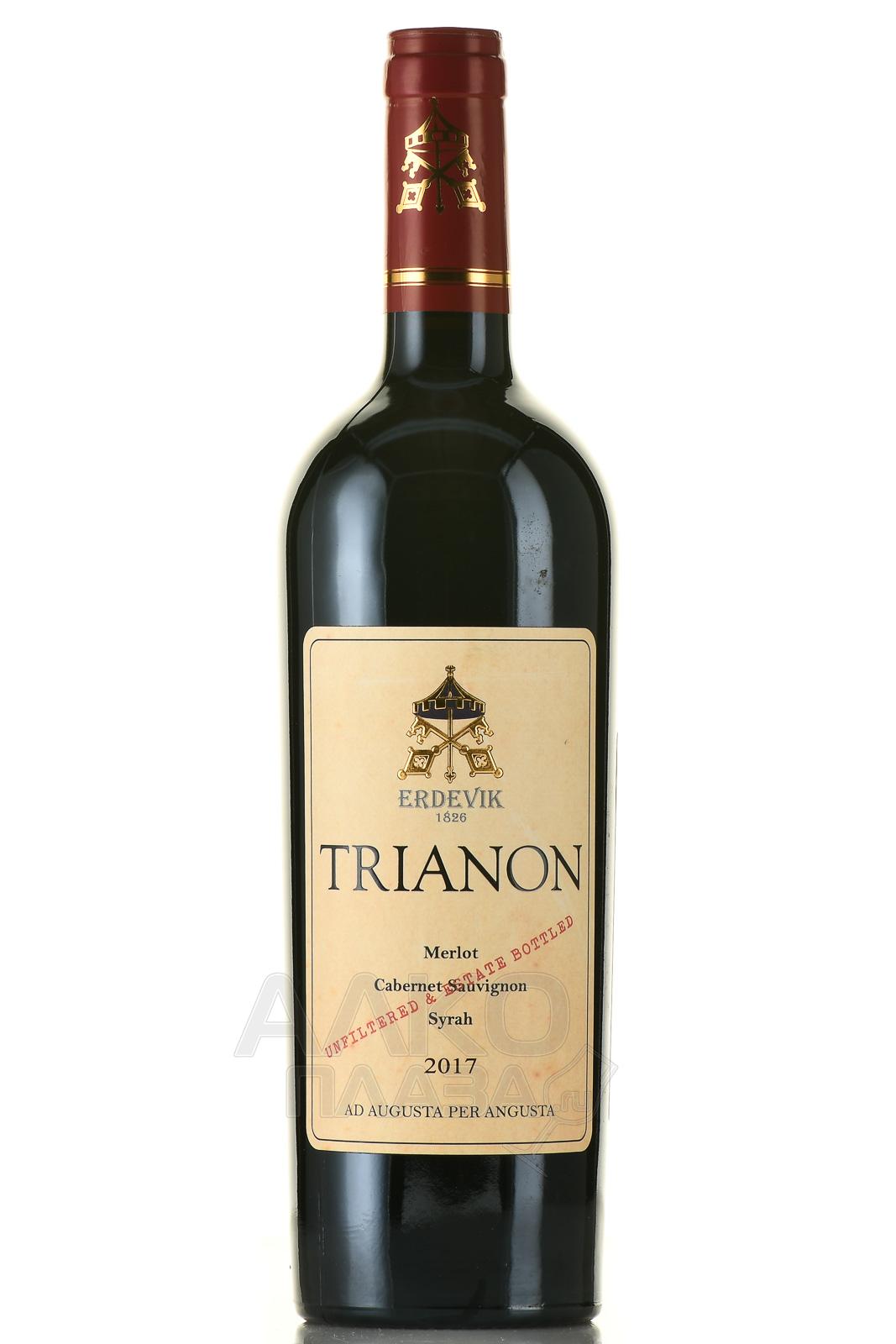 Вино красное сухое Erdevik Trianon 2017 г. 0,75 л – купаж из трех сортов винограда, популярных во всем мире. Урожаи для винификации собрали в один год. Практически весь процесс производства был проведен вручную. Отобранное сырье ферментировали в стальных емкостях, а сусло выдержали в дубовых бочках.