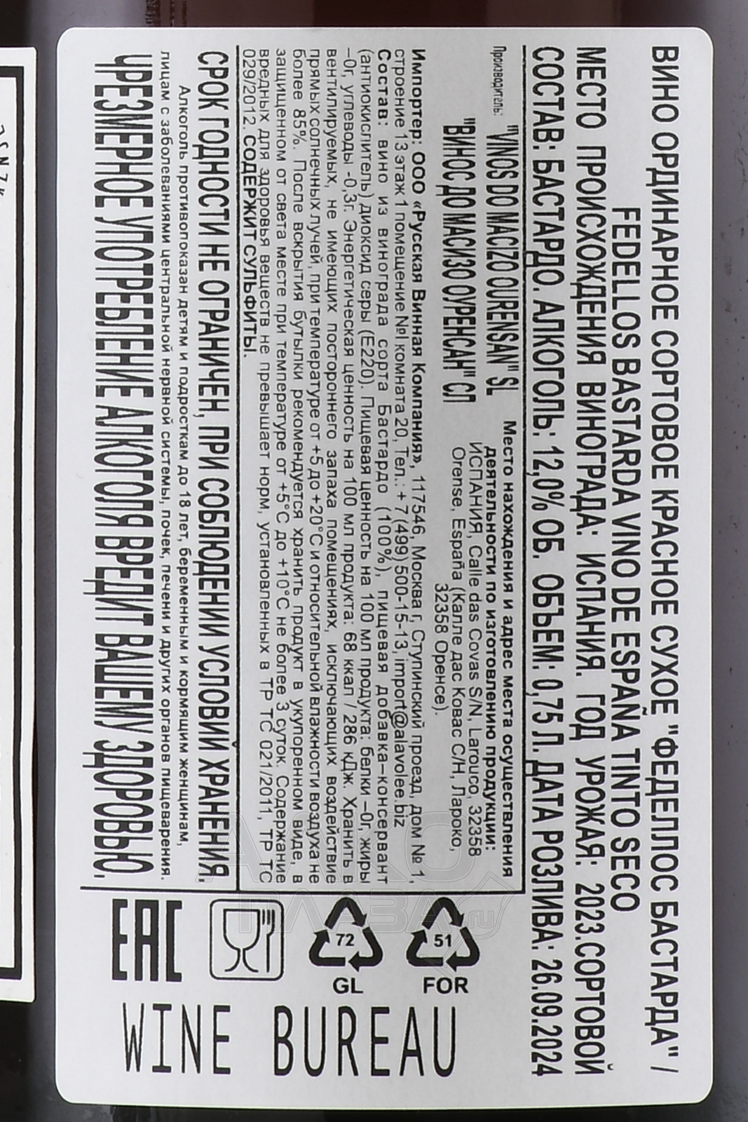 Fedellos Bastarda - вино Феделлос Бастарда 0.75 л красное сухое