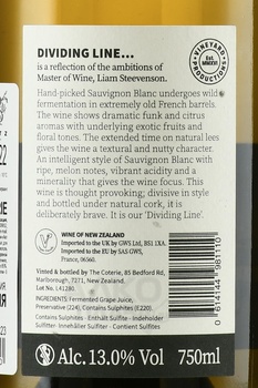 Белое сухое вино Fincher & Co The Dividing Line Sauvignon Blanc 2022 года 0,75 л обладает собственным, ярким и, по выражению критиков, смелым стилем «на грани», что и подчеркивает название, которое переводится как Разделительная линия. Оно создается из собранного вручную сорта Совиньон Блан с виноградника Alice Mills в новозеландском регионе Мальборо и является результатом совместного творчества виноделов Лиама Стивенсона и Бена Гловера. Они применяли нетрадиционные методы культивирования лозы и винификации. Урожай собирали во вторую неделю апреля в утренние часы, чтобы сохранить свежесть сырья. Его мягко прессовали, а сусло ферментировали спонтанно с дикими дрожжами в дубовых барриках. Выдержка во французском дубе продолжалась не менее 12 месяцев. Виноделы лично отбирают лучшие бочонки для составления окончательного бленда. Вино укупоривается натуральными пробками, что для Новой Зеландии редкость и является показателем элитного статуса.