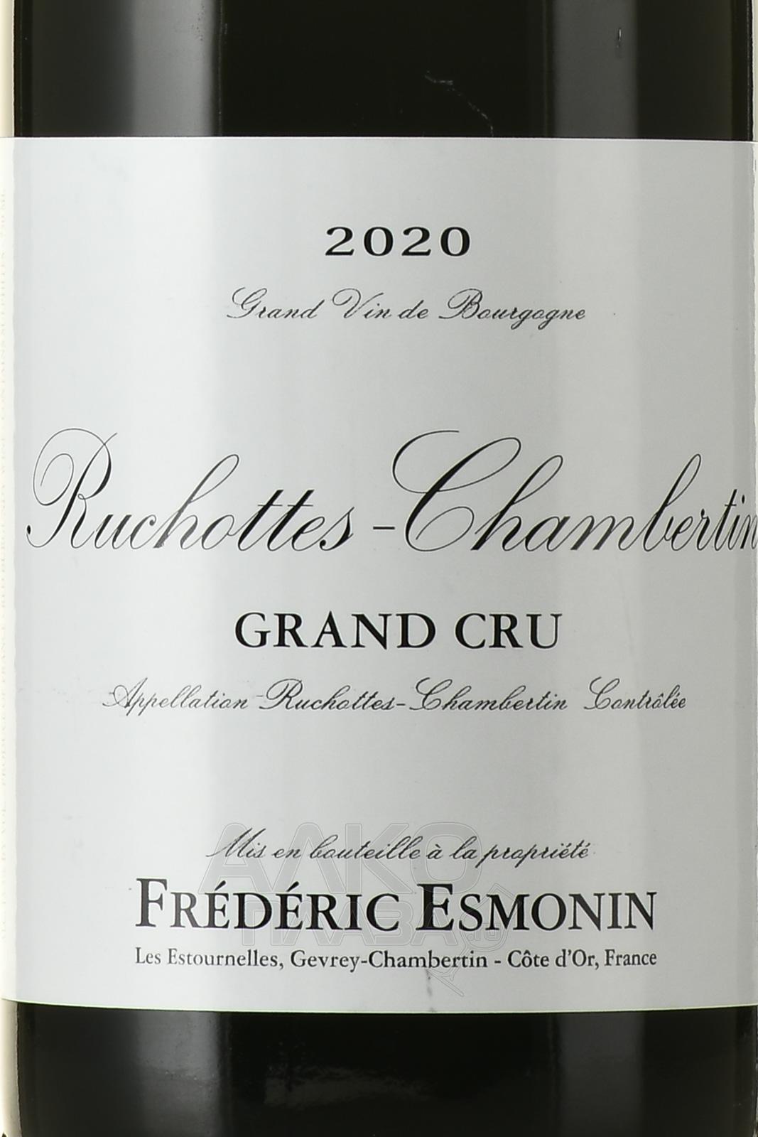 Красное сухое вино Frederic Esmonin Ruchottes-Chambertin Grand Cru 2020 г 0,75 л — моносортовой напиток Бургундии премиального класса, который производится из сорта Pinot Noir одного года сбора с органического виноградника Ruchottes-Chambertin, где лозы достигают 60-летнего возраста. Выдерживается напиток в бочках разного возраста и стадии прожарки, после чего происходит смешивание вина для получения идеального равновесия вкуса и сложности. Вино имеет отличительную особенность — оно обладает концентрированностью и наполненностью фруктовыми нотами. Перед подачей вино рекомендуется декантировать.