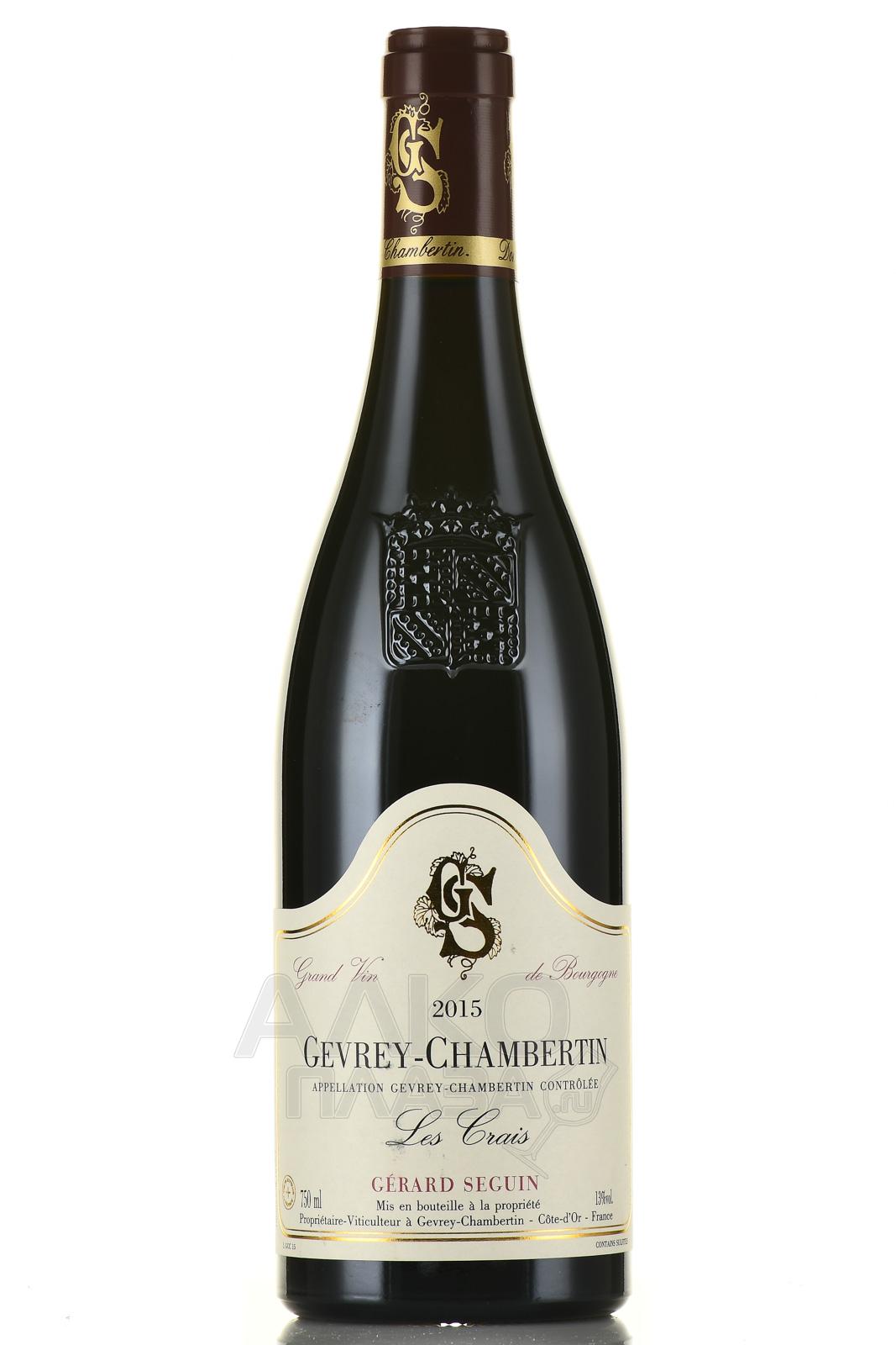 Красное сухое вино Gevrey Chambertin Gerard Seguin Les Crais 2015 г. является контролируемым по месту происхождения: апелласьону Жевре-Шамбертен в регионе Франции Бургундии. 13-процентный винтаж изготовили на производственных мощностях семейной компании путем обработки винограда со старых лоз, произрастающих в условиях континентального климата на хорошо дренированных каменистых почвах. Ягоды, отделенные от гребней, ферментировались с природными дрожжами в терморегулируемых стальных емкостях, затем сусло перелили во французские дубовые бочки (новые и старые) для выдержки на срок от 12 до 18 месяцев.