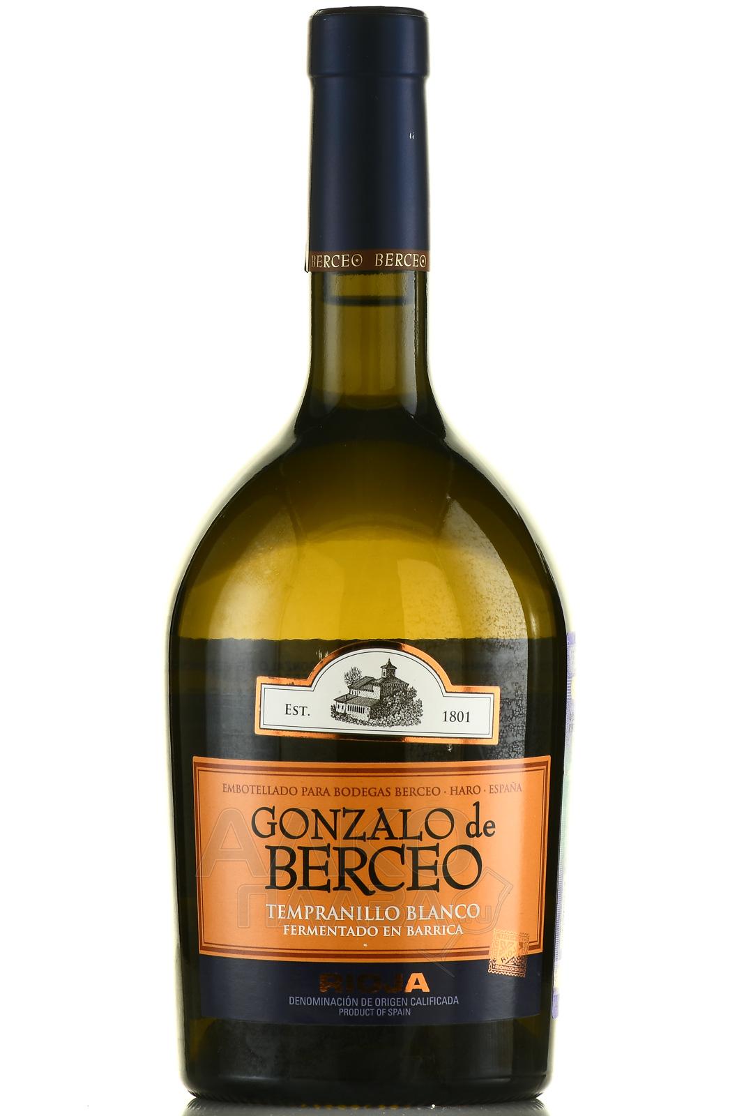 Белое сухое вино Gonzalo de Berceo Tempranillo Blanco Rioja DOC 0,75 л произведено в знаменитом испанском регионе Риоха. Его главной особенностью является использование в роли сырья редкого сорта Темпранильо Бланко (естественная мутация красной разновидности, виноград-альбинос). Он выращивается в муниципалитете Рибафреча на высоте 700 м. Его собирают ручным способом рано утром в ящики по 15 кг, чтобы сохранить свежесть. Алкогольная ферментация осуществляется в стали, затем на 2-3 дня вино переливают в дубовые бочки, где процесс завершается. Для усиления вкусовых характеристик напиток выдерживается 9 месяцев в бочонках из французского (70%) и американского (30%) дуба, как новых, так и повторно используемых. Такое сочетание методов придает сложность, глубину и особую текстуру.