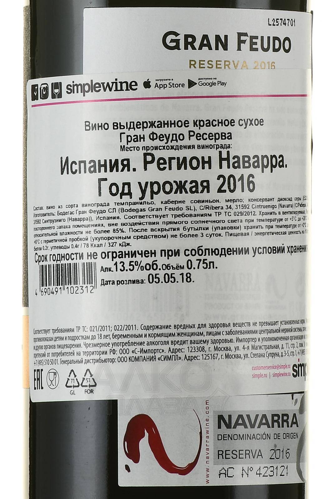 Gran Feudo Reserva Navarra - вино Гран Феудо Ресерва Наварра 0.75 л красное сухое