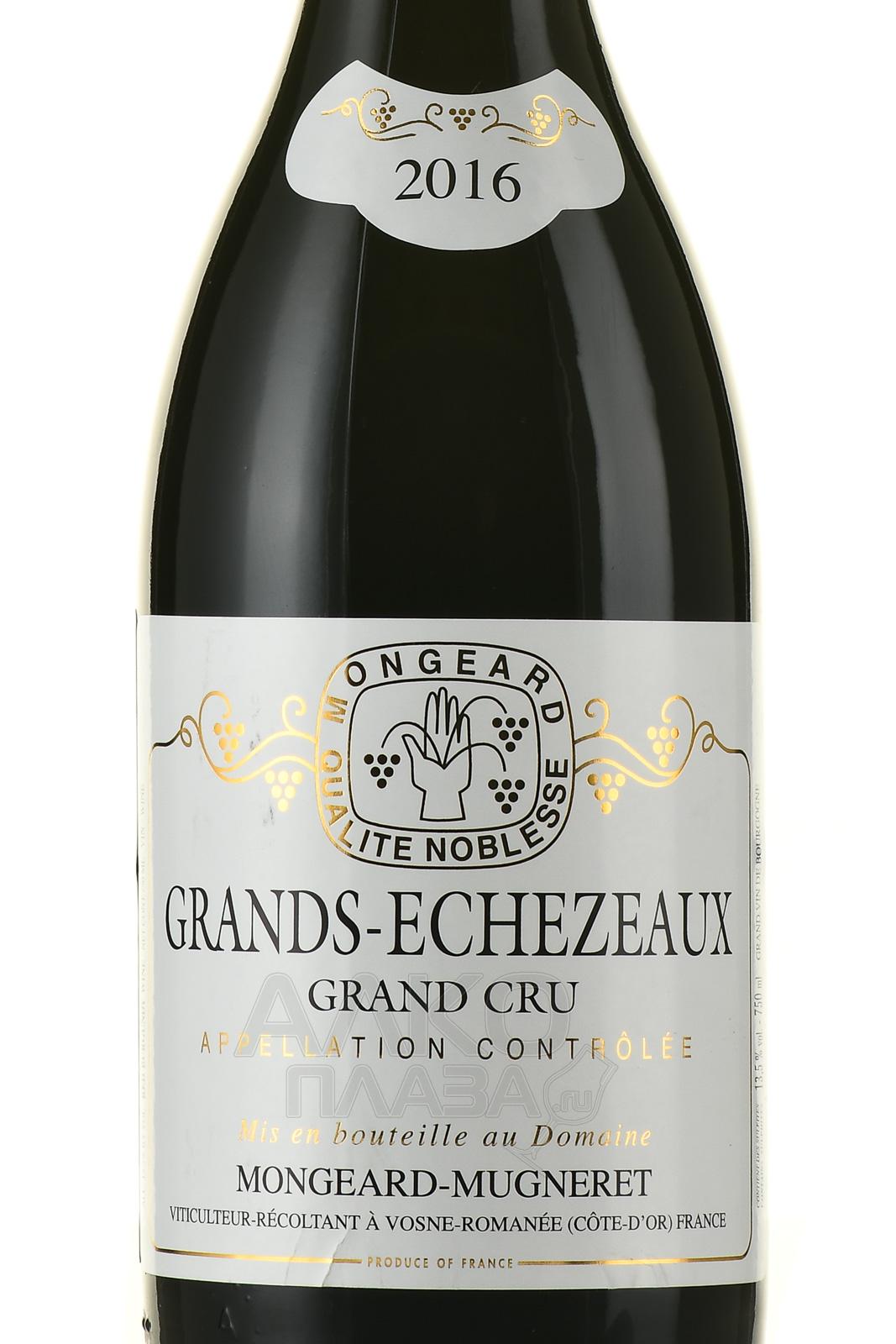 Красное сухое вино Grands-Echezeaux Grand Cru Mongeard-Mugneret 0,75 л изготовлено в области Бургундии Нюи-Сен-Жорж из местного винограда с лоз возрастом 40-68 лет, собранного в один год на холмистых участках Гран Крю с известняково-глинистым почвенным составом. Основой напитка стали ягоды оптимальной зрелости, отделенные от гребней. В процессе обработки их мацерировали сроком до 5 дней и подвергали алкогольному сбраживанию сроком 12-15 суток в металлических цистернах при поддерживаемой температуре 30 °C. Вызревание вина в дубовой таре продлилось на менее полутора лет. Со временем на дне бутылки со спиртным, которое имеет долгий потенциал к развитию в стекле (порядка 17 лет), может образоваться естественный осадок.